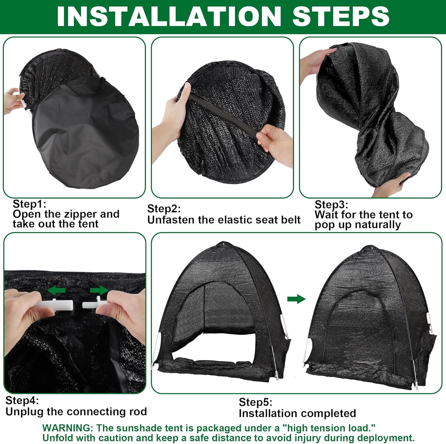 • Lightweight, Portable & Easy Installation: Your will get a carry bag and three shade covers. With a pop-up design (please be careful when opening), this 33.5x35.5x31.5 inch sunshade net requires no assembly and folds into a compact bag for easy portability, making it ideal for outdoor gardens, patios.