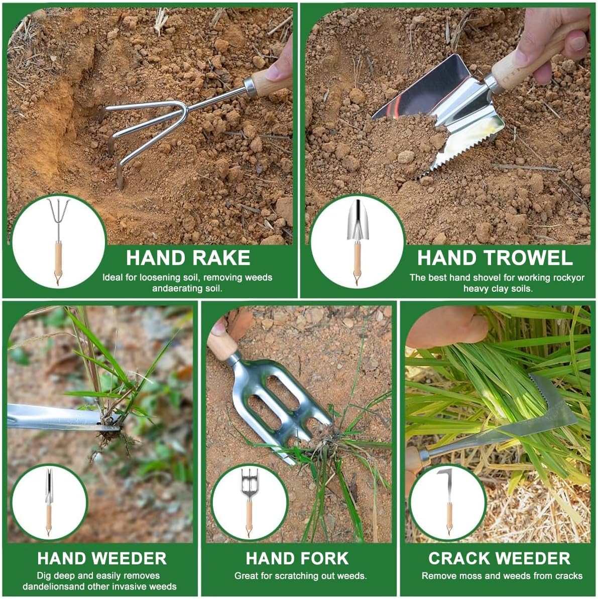 • Sturdy and Rust-Proof Construction: Crafted from high-strength stainless steel, this gardening tool set (including the essential pitchfork) is built to last. The durable and rust-resistant materials ensure longevity, maintaining peak performance even in harsh outdoor conditions. These tools are designed to withstand heavy use without deformation, providing reliable support for all your gardening needs.