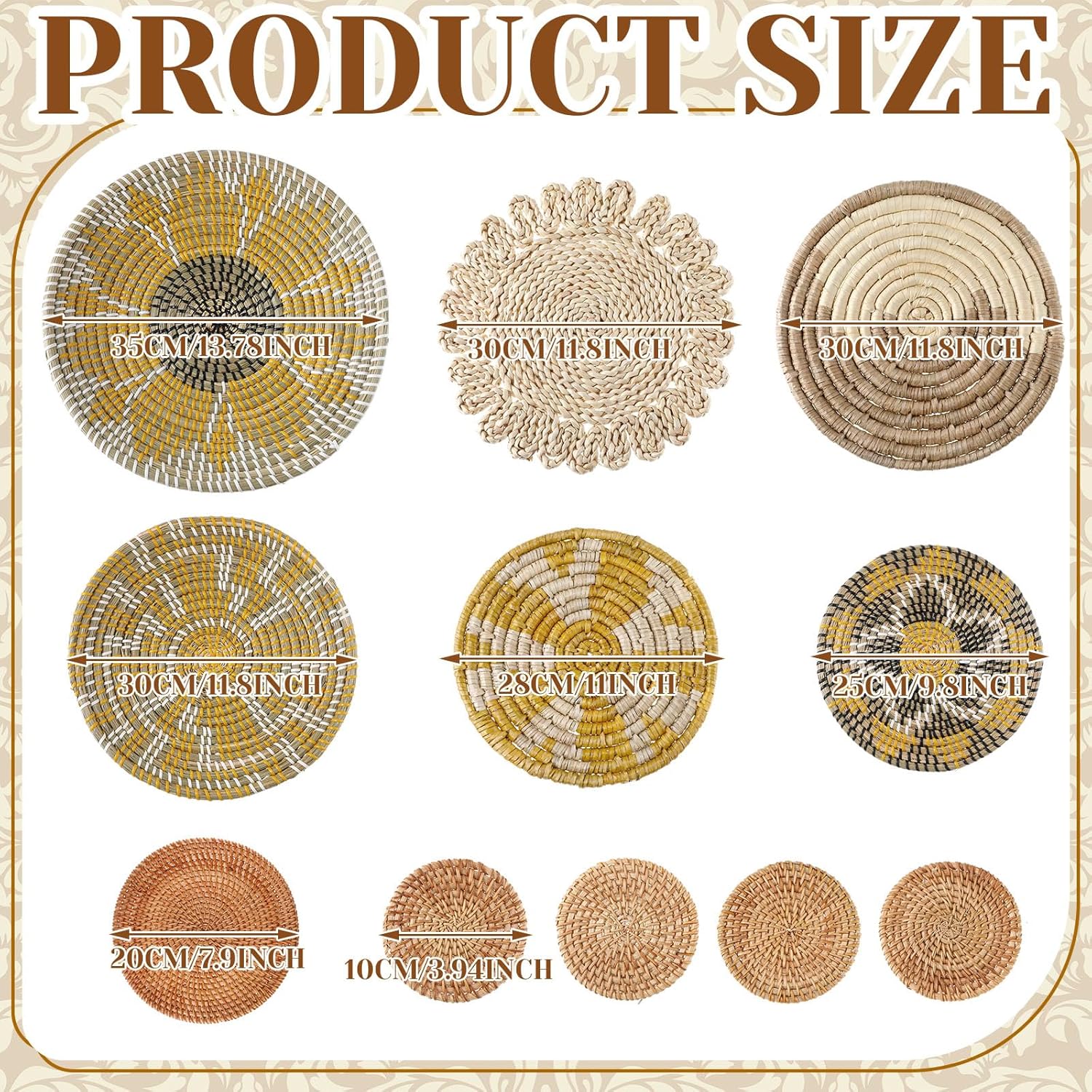 • Wide Range of Applications: boho basket wall decor set as placemats, or as decorative baskets to store toys and accessories, the rustic basket wall art is suitable for many occasions, such as hotels, restaurants, living rooms, bedrooms, schools, stores, offices, dorms, shops, spring, summer and more, bringing you an elegant and classic feeling