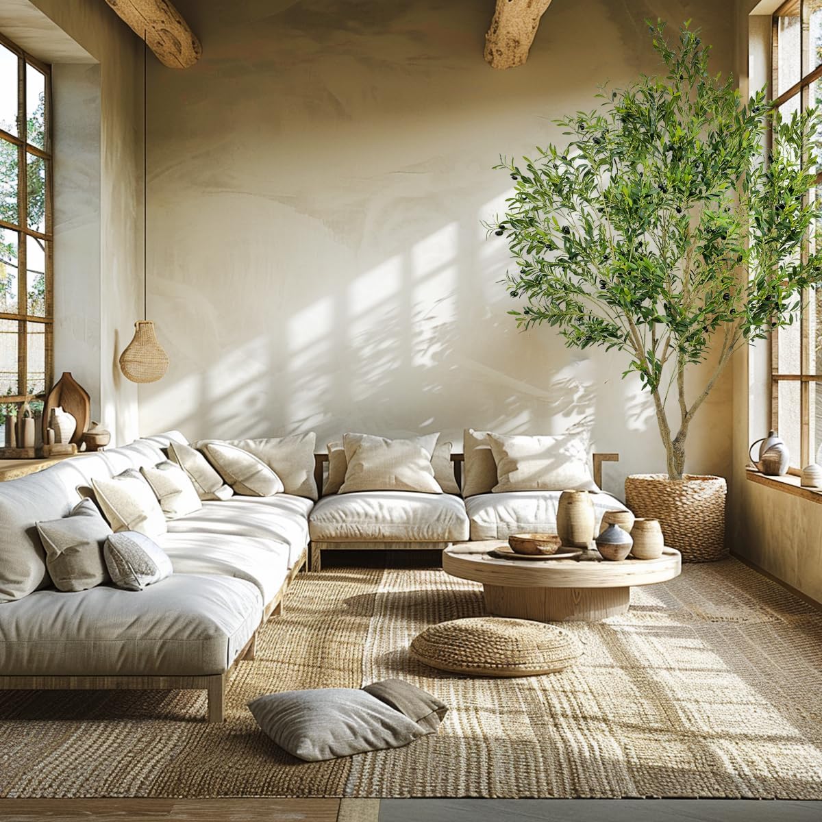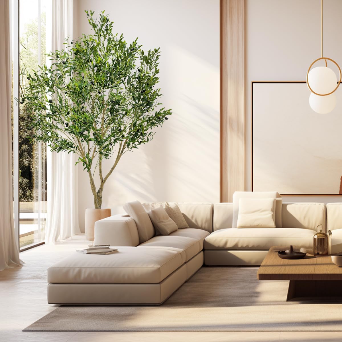 • 4. The olive tree is made of eco-friendly PE fabric and sturdy wire inside, no smell and no watering required. It will not fade when placed indoors and is baby and pet safe.