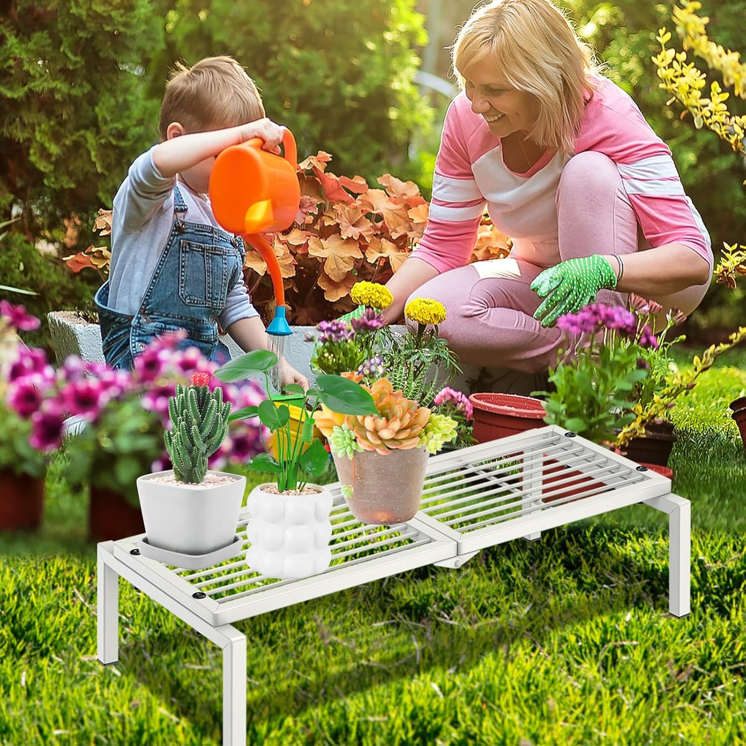 • Product Dimension: The metal plant shelf measures 31.1" L x 11.8" W x 8.1" H, with its sturdy grid and reinforced construction ensuring pots of all sizes stay securely in place.