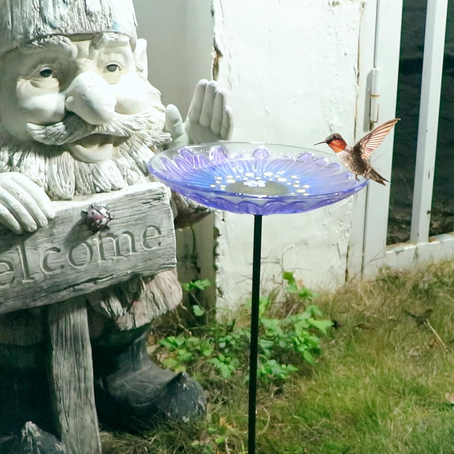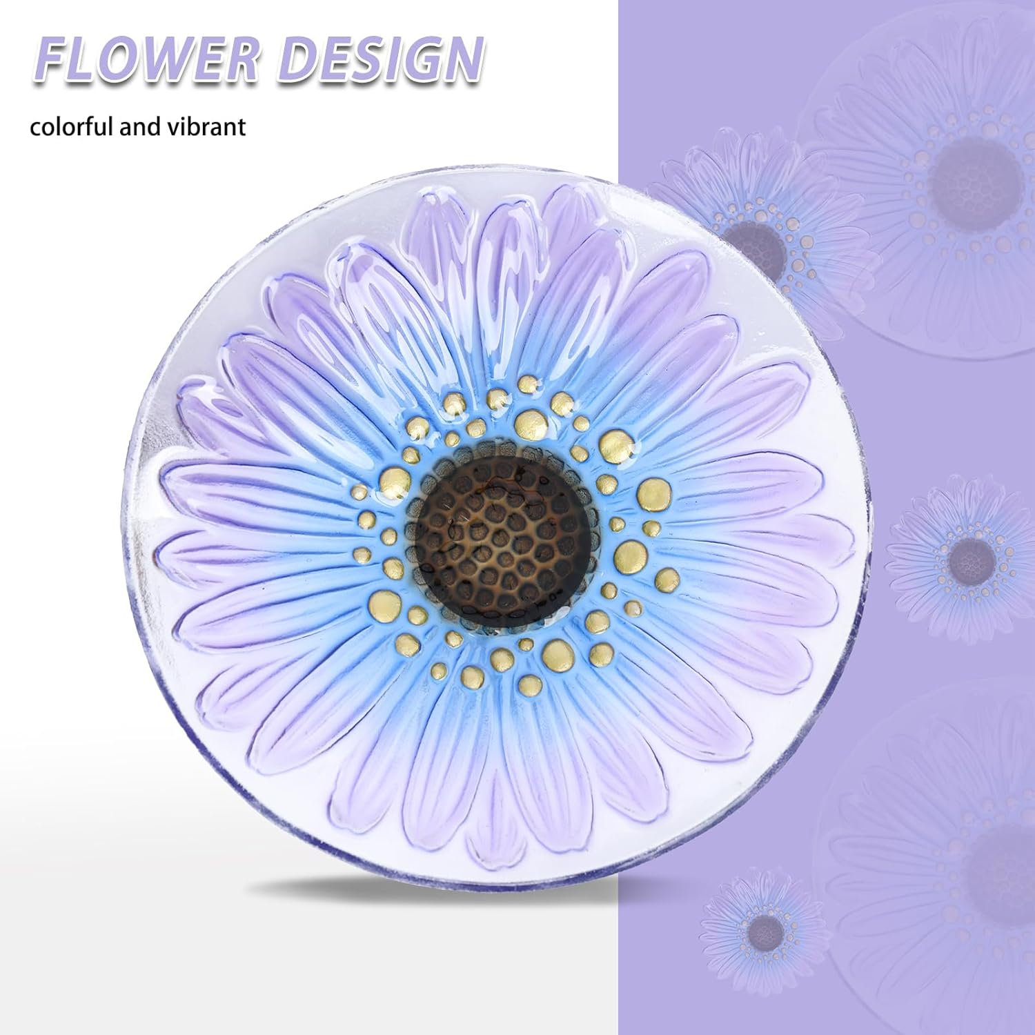 • {Purple Daisy Flower Birdbath} Uses special substantial nontoxic glass, causes zero harm to birds and other creatures, and this glass bird baths for outdoor has beautiful daisy flower as well as distinctively bright-colored which would attract more birds to bathe