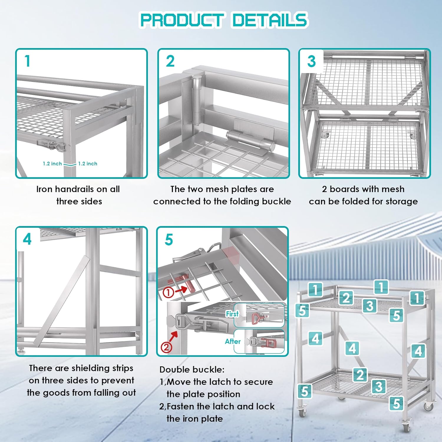 • 【Iron grid design】 thicken the handrails and plates of the trolley, and perform a detailed treatment on the edge of the trolley to better extend the lifespan. The trolley platform adopts a grid-like design, which increases its versatility and breathability, and does not accumulate water or soil. It can be used as a vending cart and barbecue grill, and is easy to clean