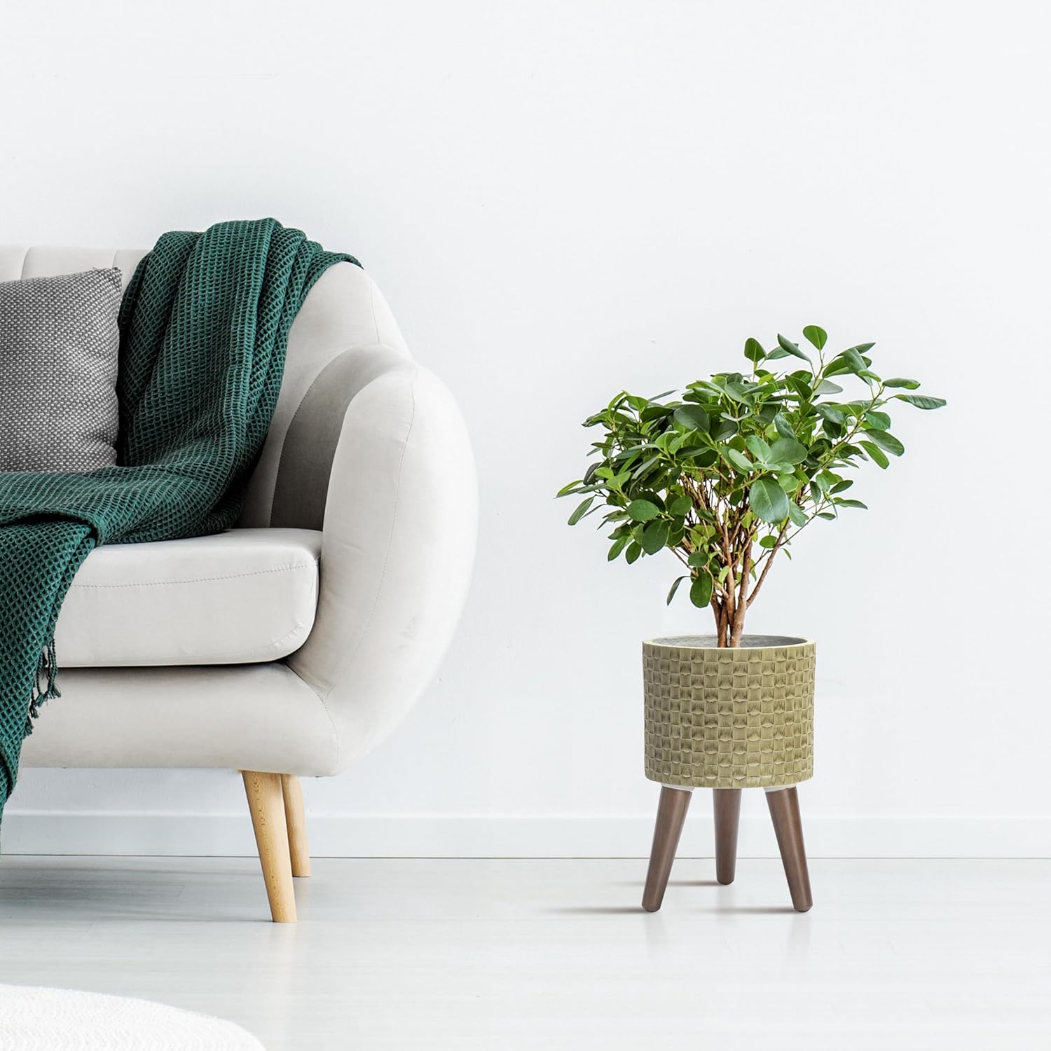 • Sturdy Wooden Legs: Supported by sleek wooden legs, this planter offers a stable base and enhances its overall aesthetic appeal.