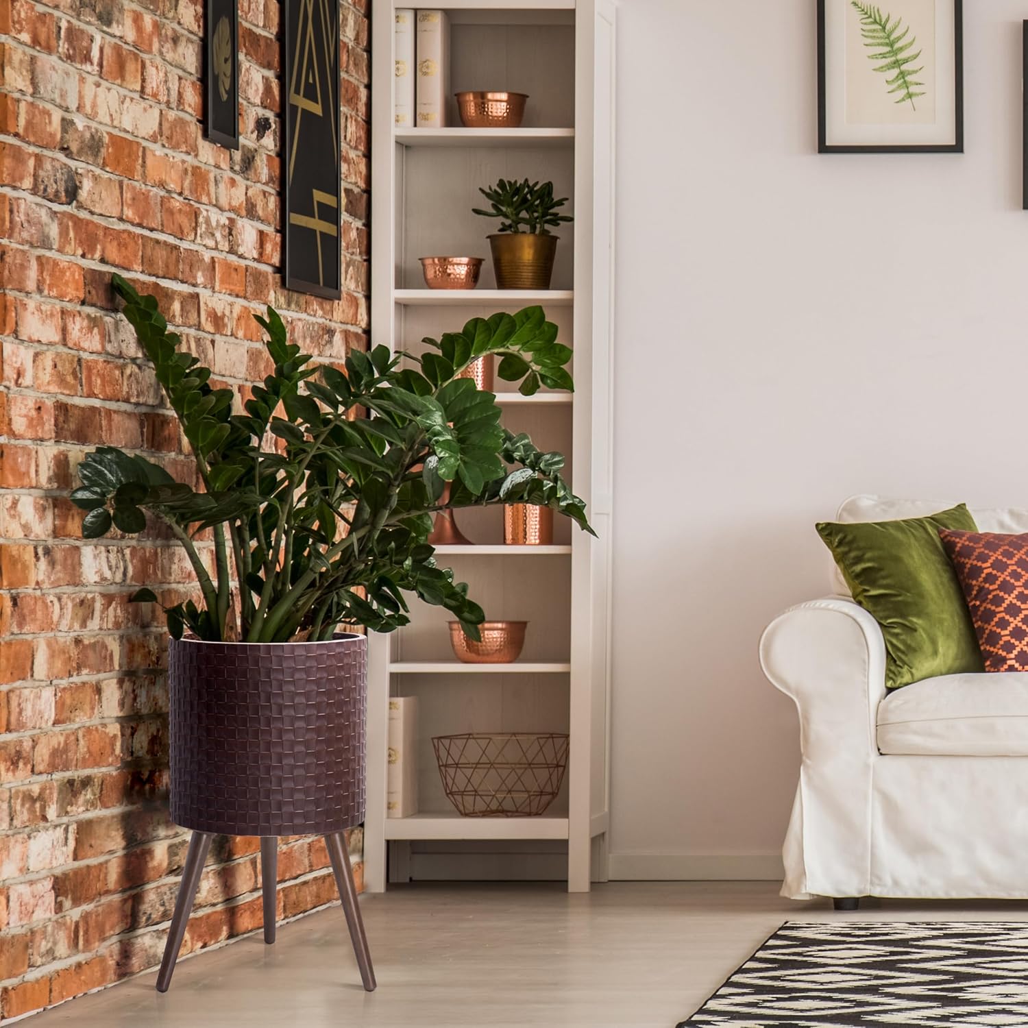 D'vine Dev 14 Inch Modern Geometric Tile Patterned Sleek Planter Pot with Stand, Indoor Outdoor Decorative Plant Holder, Espresso, 88-Z-D-6
