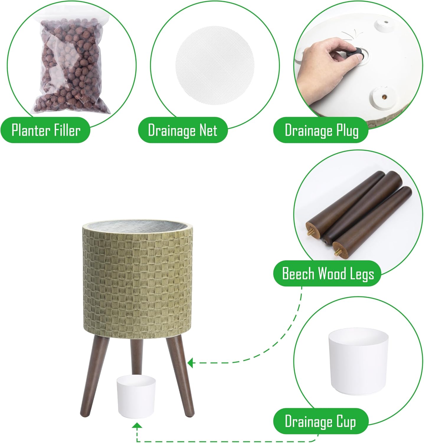 • Sturdy Wooden Legs: Supported by sleek wooden legs, this planter offers a stable base and enhances its overall aesthetic appeal.
