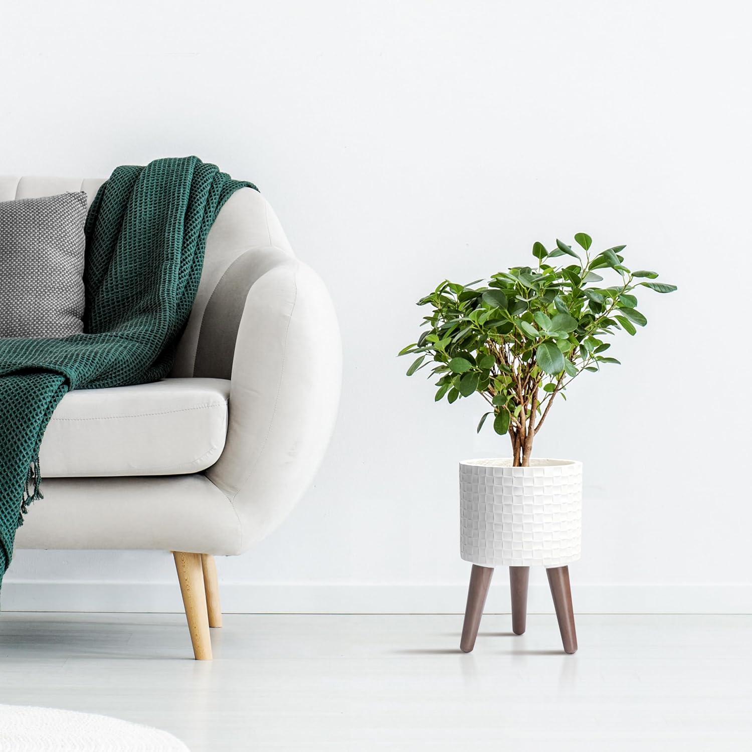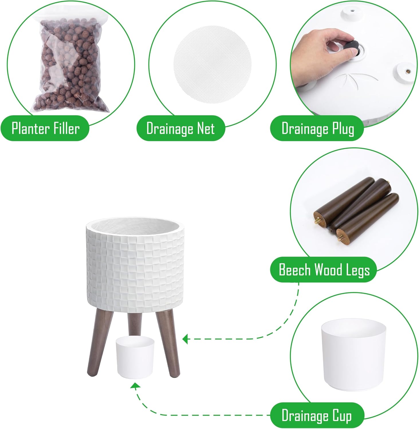 • Stable Wooden Stand: Comes with a sturdy, mid-century-style wooden stand to elevate your plants while enhancing stability and style.