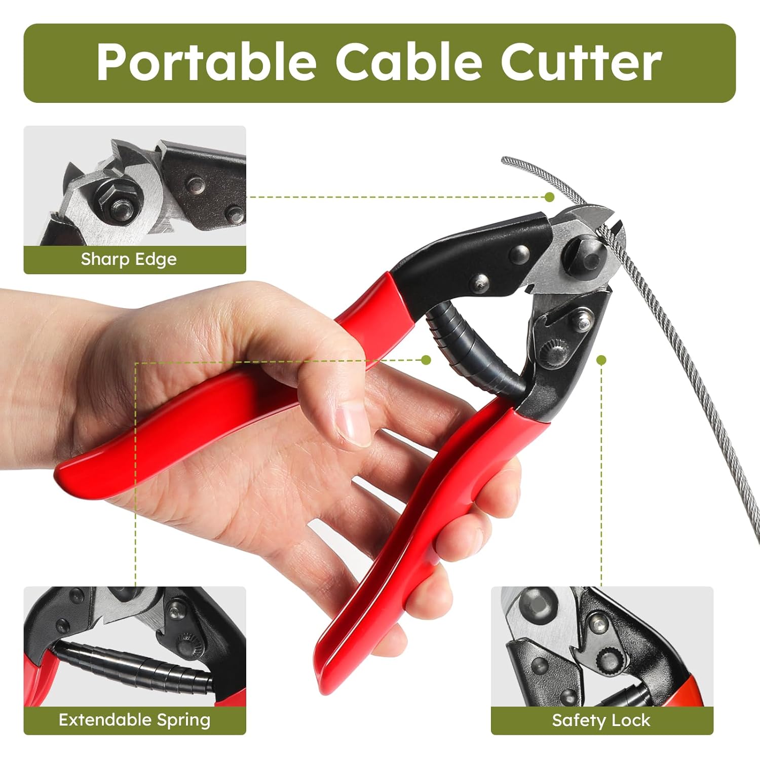 • Convenient Use and Storage: We provide 1× 500 ft cable railing wire and 1× cable cutter. The wire rope is smoothly wrapped around the reel and can be cut to the length we need, the whole design is very convenient to use and store