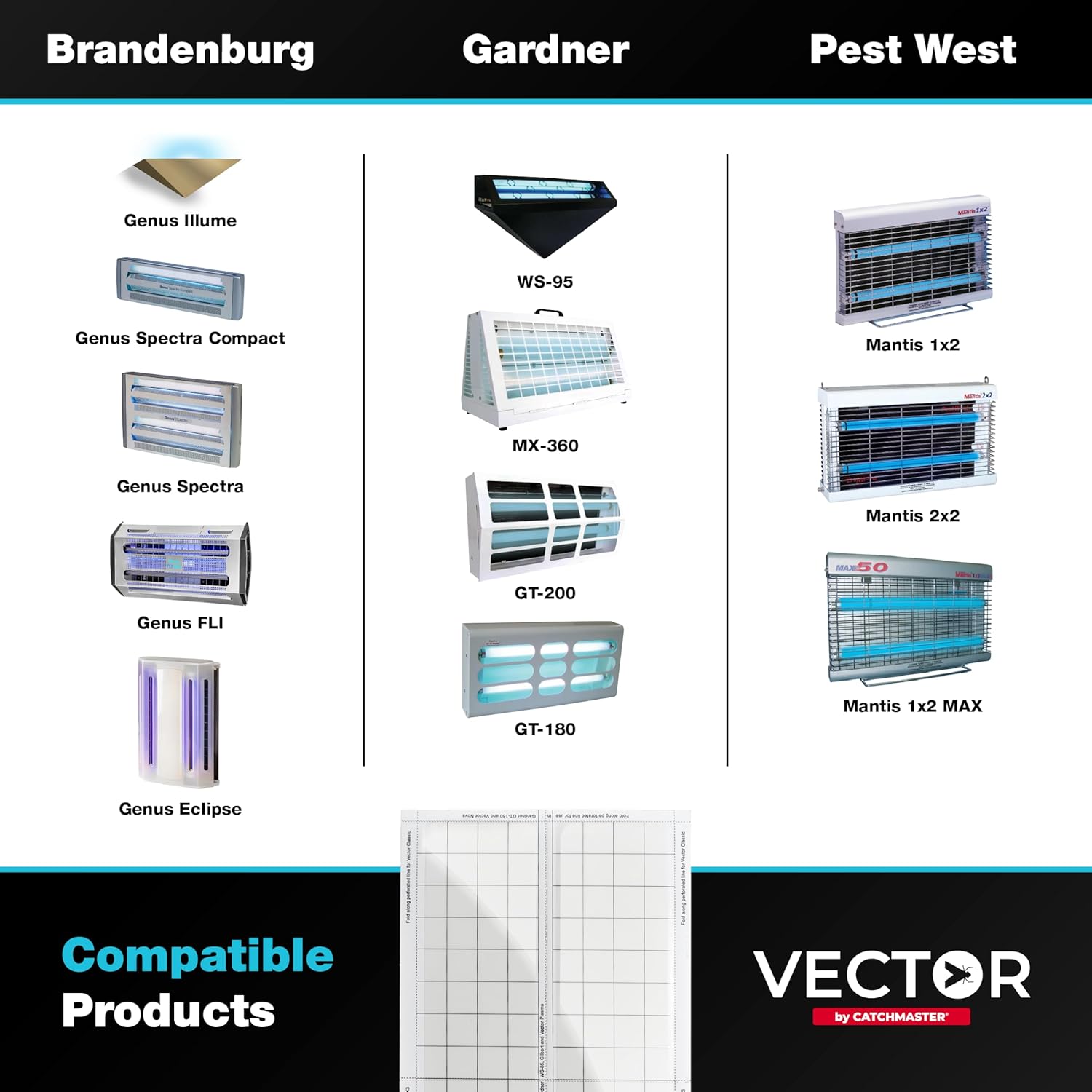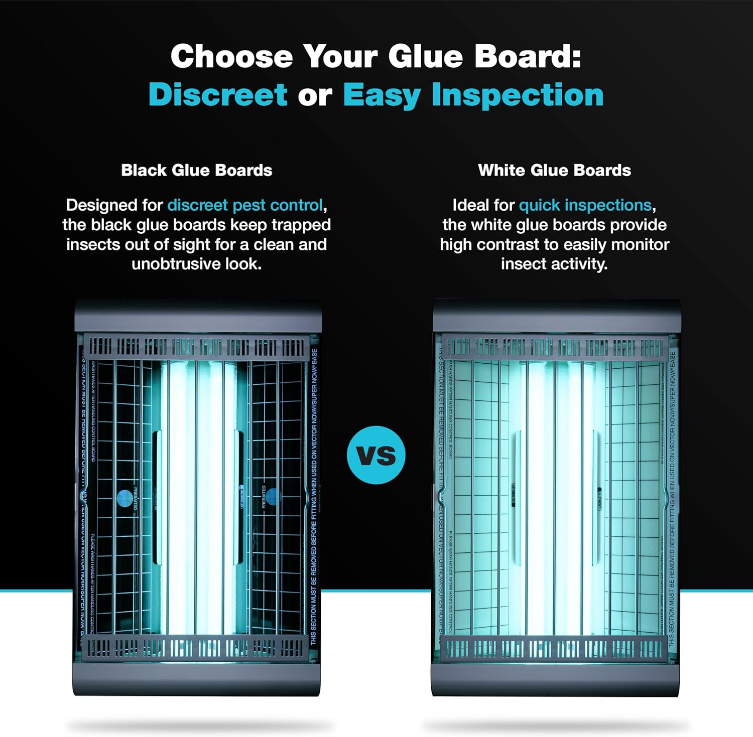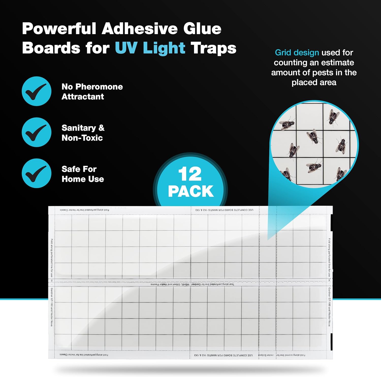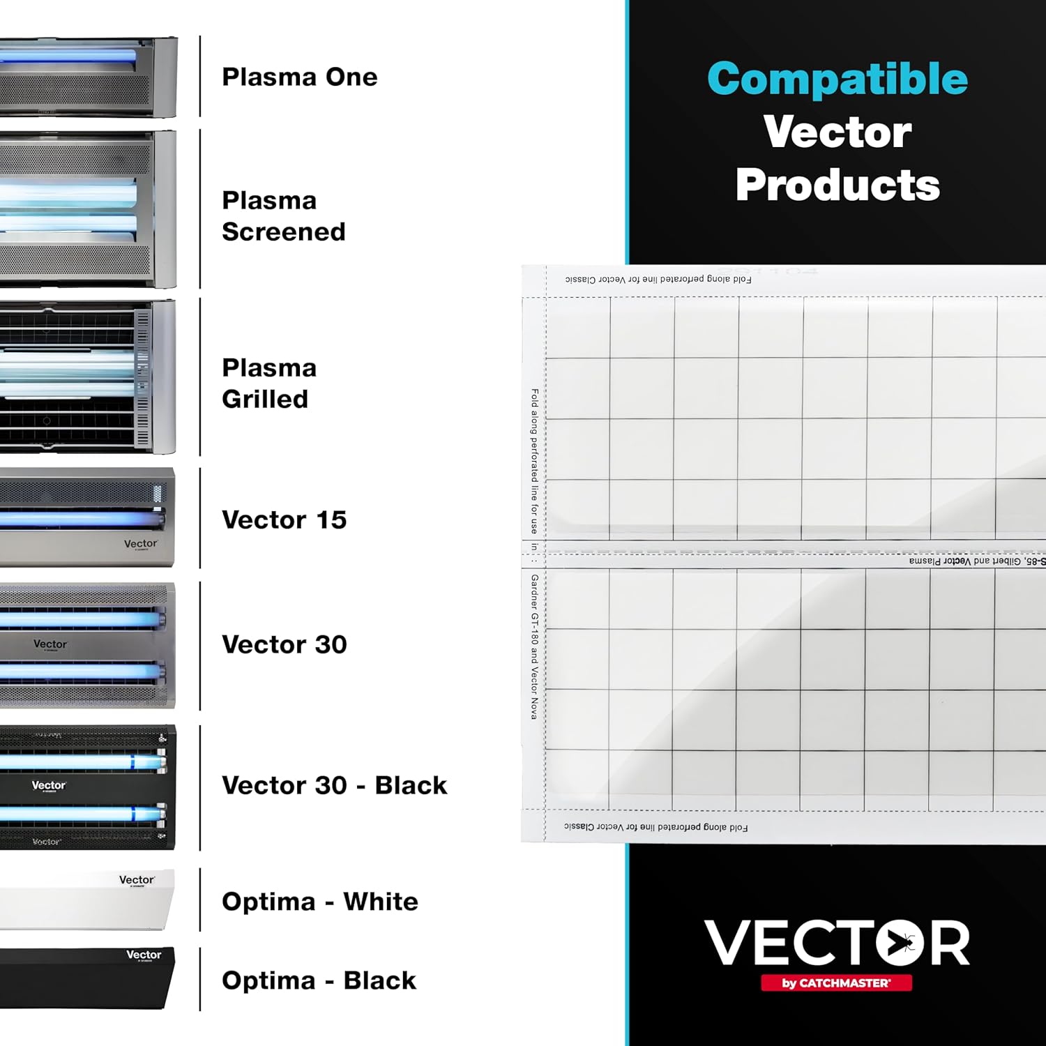 • GLUE BOARD REFILLS FOR UV TRAP: This set includes 12 replacement glue boards with perforations to create 24 glue boards compatible with Vector Fly Light Traps, including the Vector Classic, Vector Plasma Grill, Vector Plasma Screened, Vector Plasma One, Vector 15, Vector 30, and Vector Optima. The Vector Light Traps are sold separately.