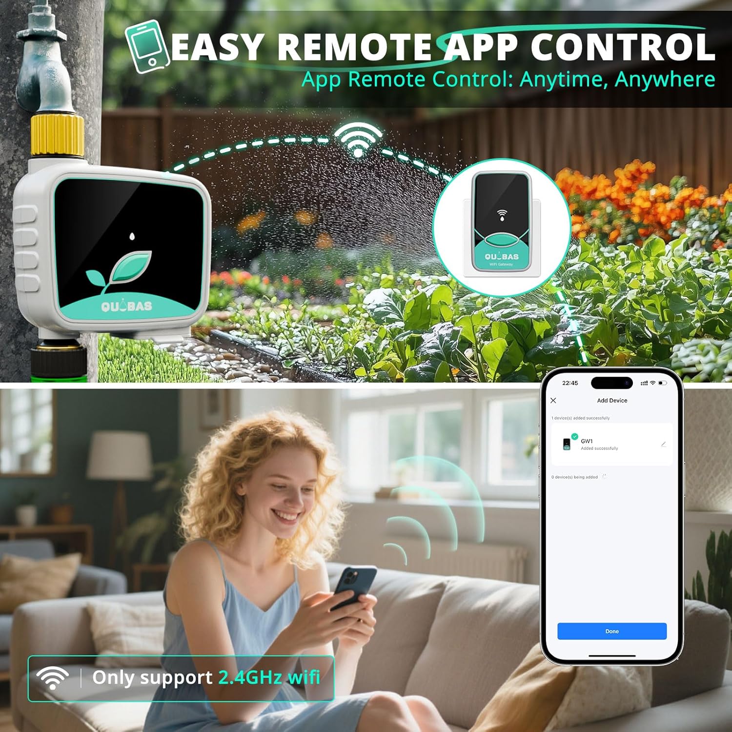 • APP Remote Control – Remotely control your WiFi water timer with Smart Life APP and set schedules anytime, anywhere (Only Support 2.4GHz Wifi)