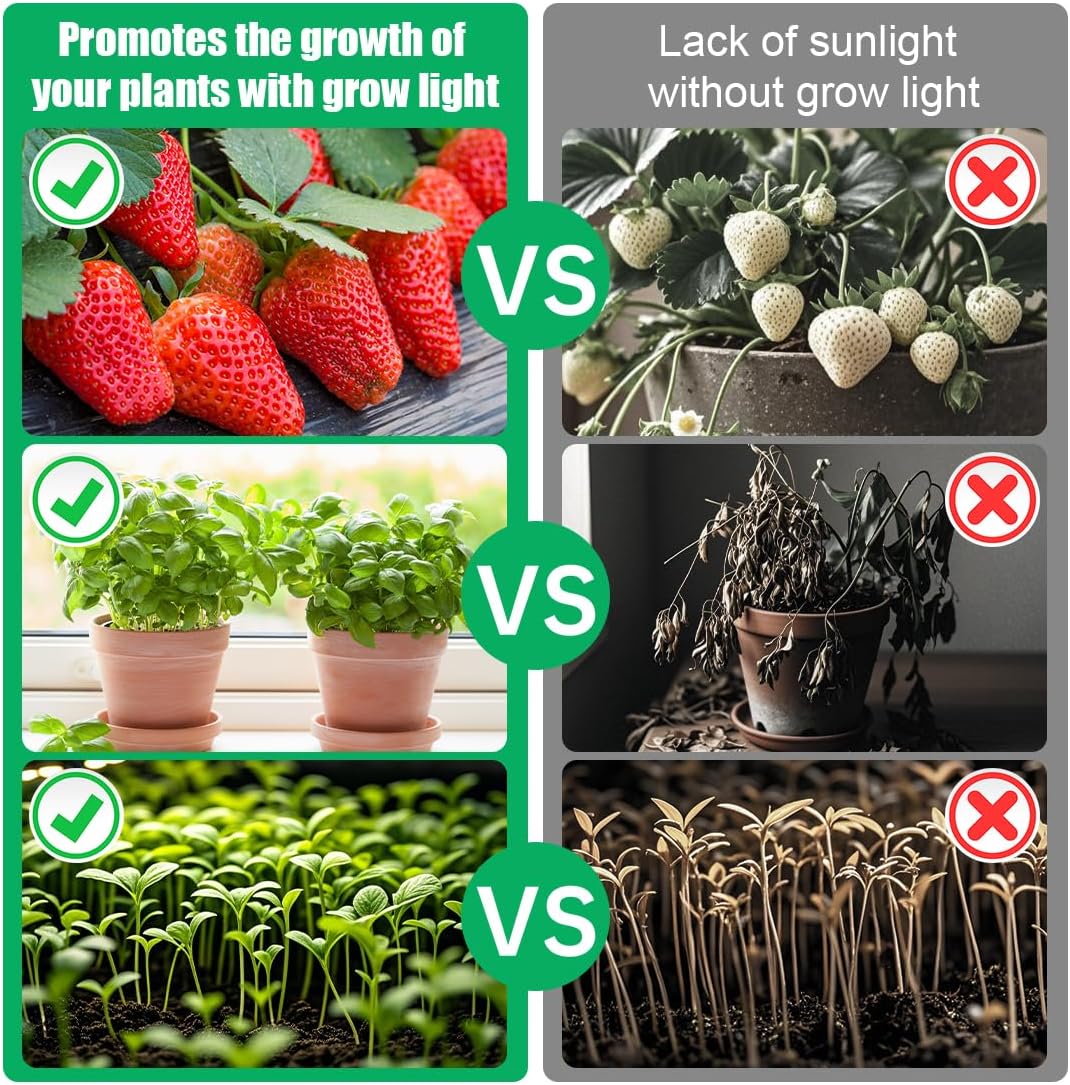 • Boost Seedling Growth with 4 Full-Spectrum LED Grow Lights – Energy-efficient lights with adjustable brightness mimic natural sunlight, accelerating germination and healthy growth for herbs, succulents, and seedlings
