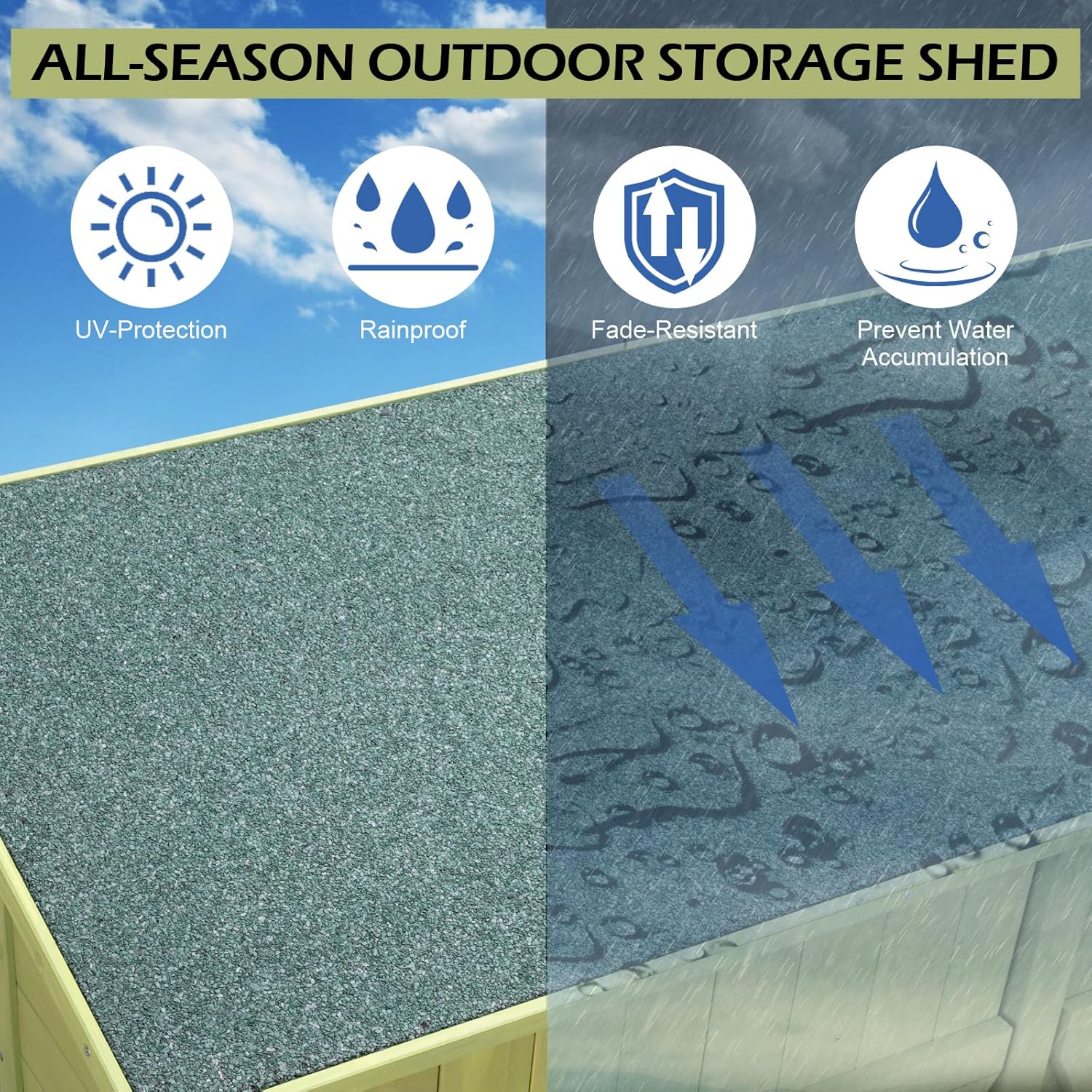 • WATERPROOF ASPHALT ROOF: The roof of garden tool closet is made of asphalt with waterproof coating to against bad weather. The sloping design allow rain to flow down quickly and avoids stagnant water, and don't worry about whether water will seep into the wood
