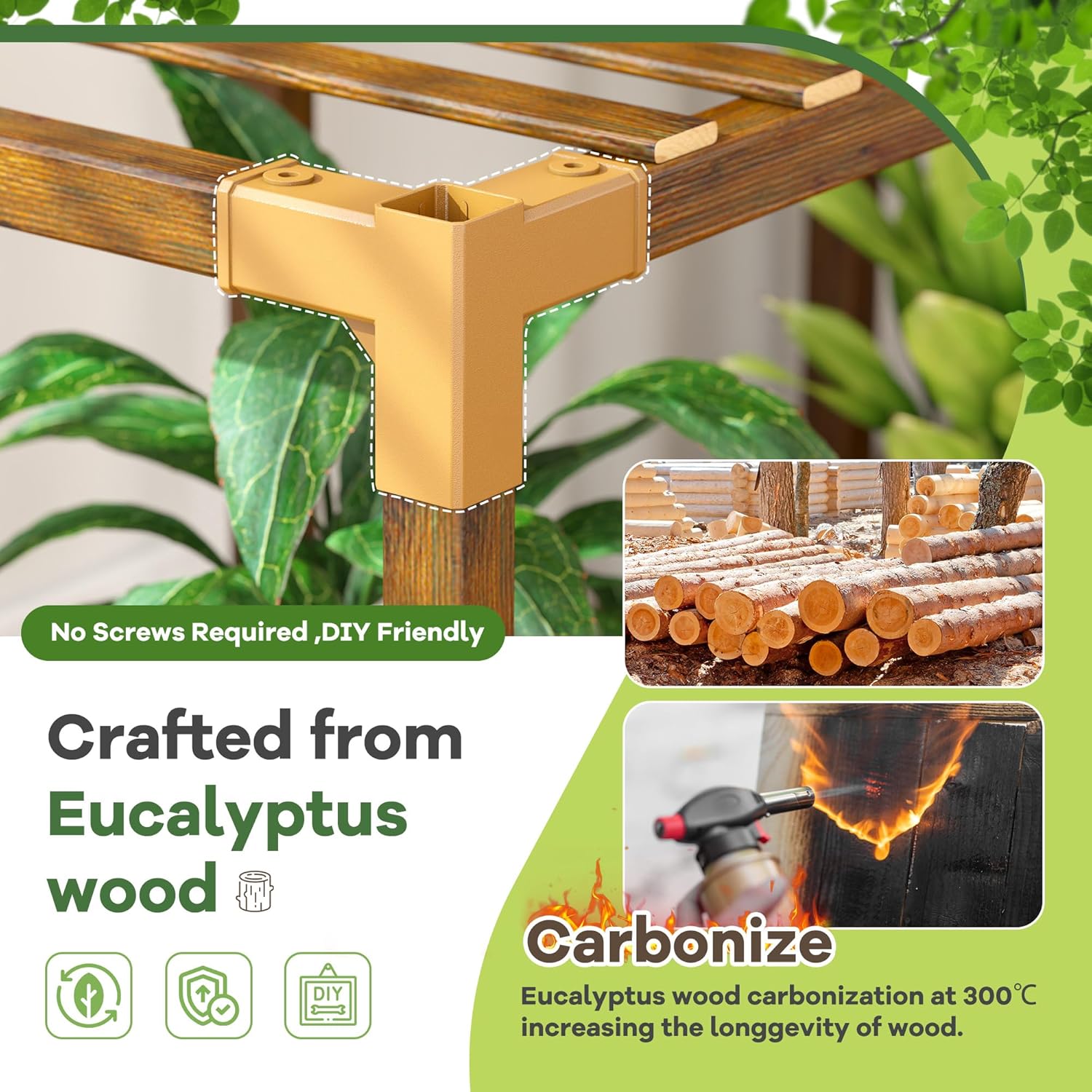 • 【Durable Carbonized Natural Wood and DIY Plant Shelves】The plant racks are made of premium wood and carbonized at high temperature, no fade, shrink, warp, crack. This process not only extends its lifespan but also ensures it remains a healthy choice, eliminating the need for extra paint or varnish, that enhances waterproof performance and extend service life for both indoor and outdoor use. You can customize the configuration, DIY to suit your preferences! Easily switch up the overall shape of the plant stand by simply changing the connections around. You can also split or connect multiple kits together to make displays that fit your space and create your indoor garden