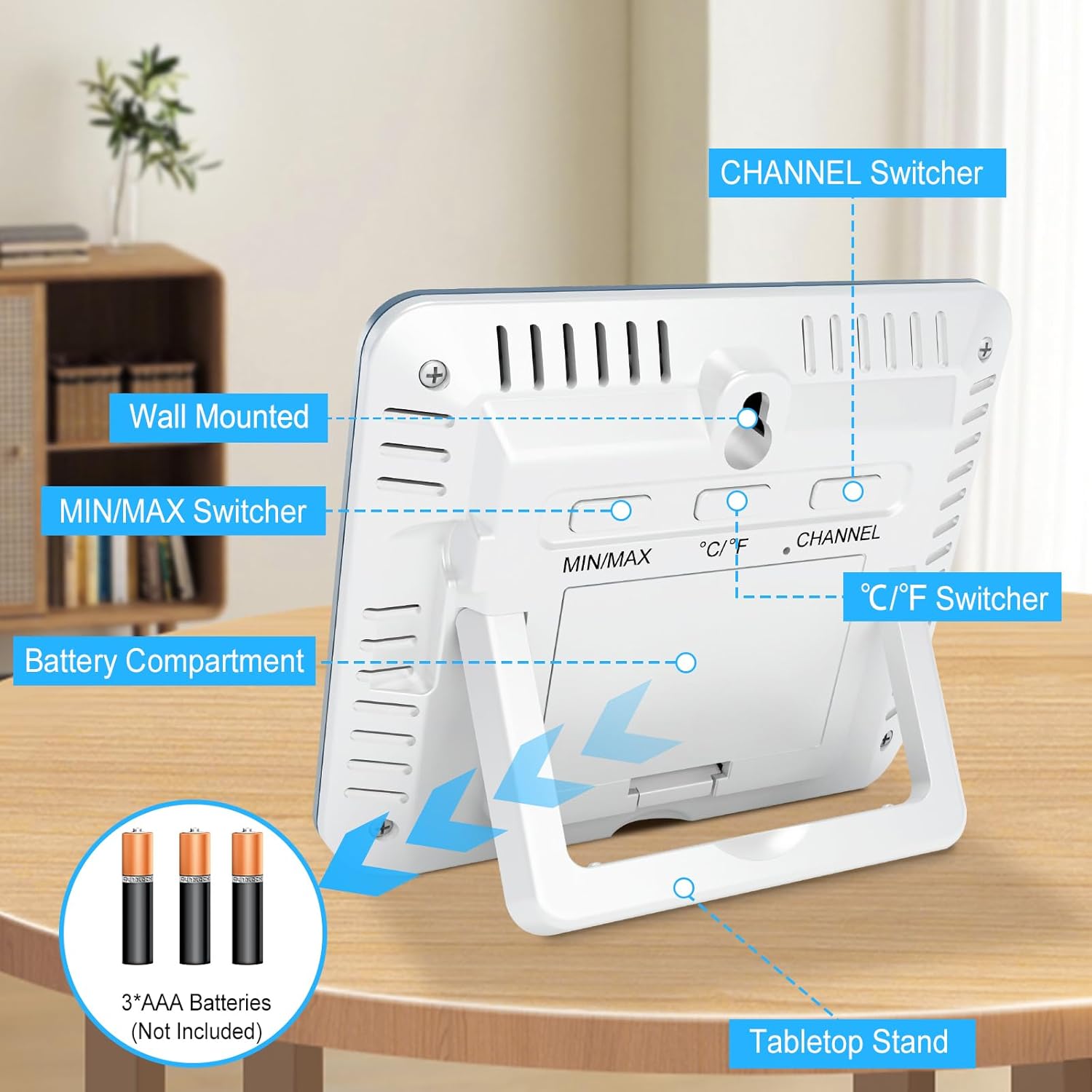 • Easy to Use: Simple and concise design, the indoor thermometer easy to read and operate. It is powered by 3 AAA batteries (not included). Features desk stand or wall-mountable to meet your want