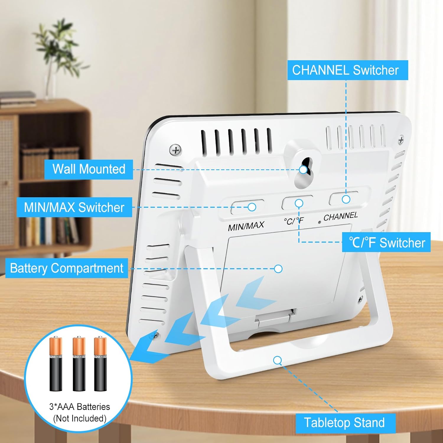 • Wireless Remote Sensor: With 3 remote sensors, temperature and humidity information can be monitored in multiple areas of your home at the same time. such as bedroom, kitchen, greenhouse, garage, nursery, etc. The wireless sensors have a transmitting range of 328 feet/100 meters in open areas