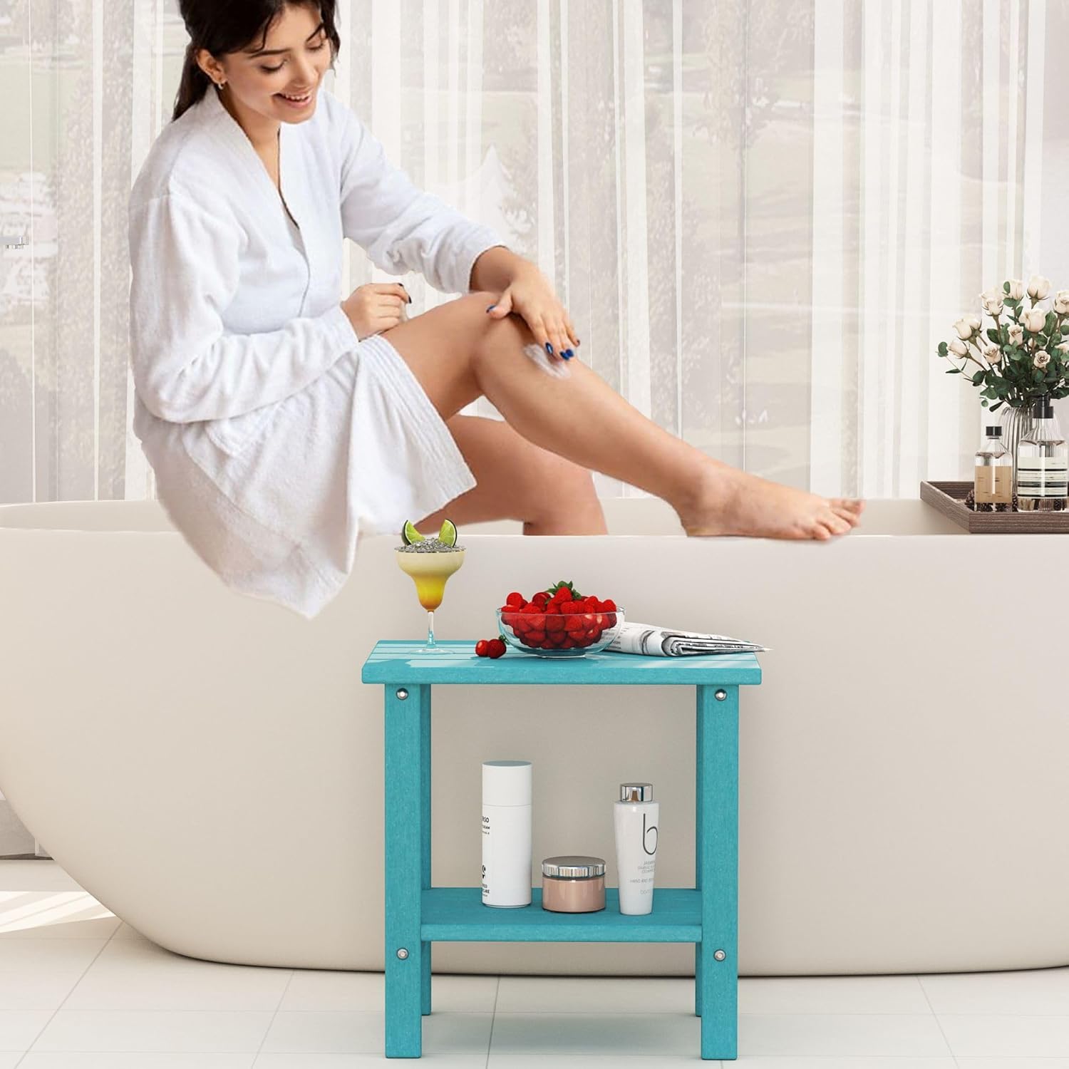 • Widely Application for Indoor & Outdoor: Choose from a variety of trendy colors to match your indoor and outdoor space. The outdoor end table is perfect to complement adirondack chairs, patio chairs, and rocking chairs in patio, garden, lawn, pool and balcony. The outdoor small table is also suitable for the living room, bedroom, bathroom and kitchen.