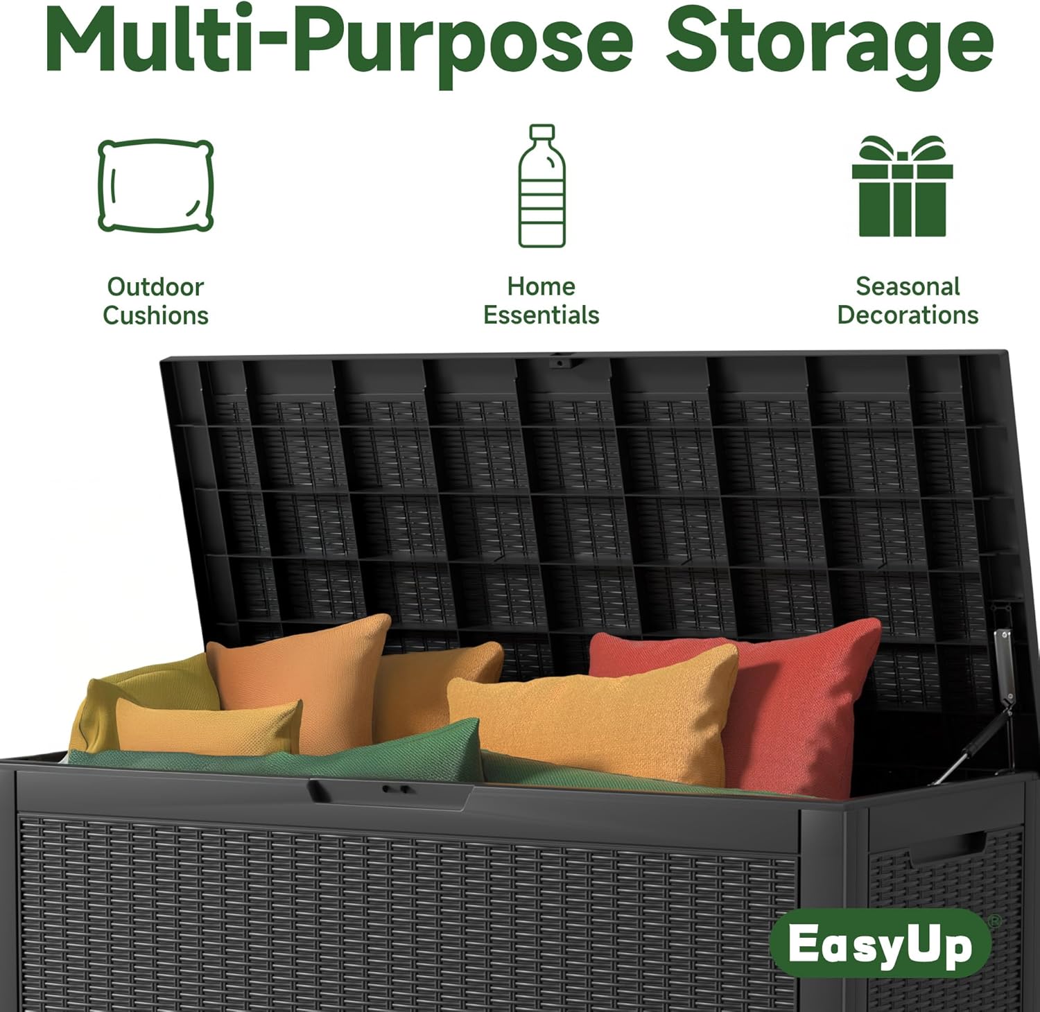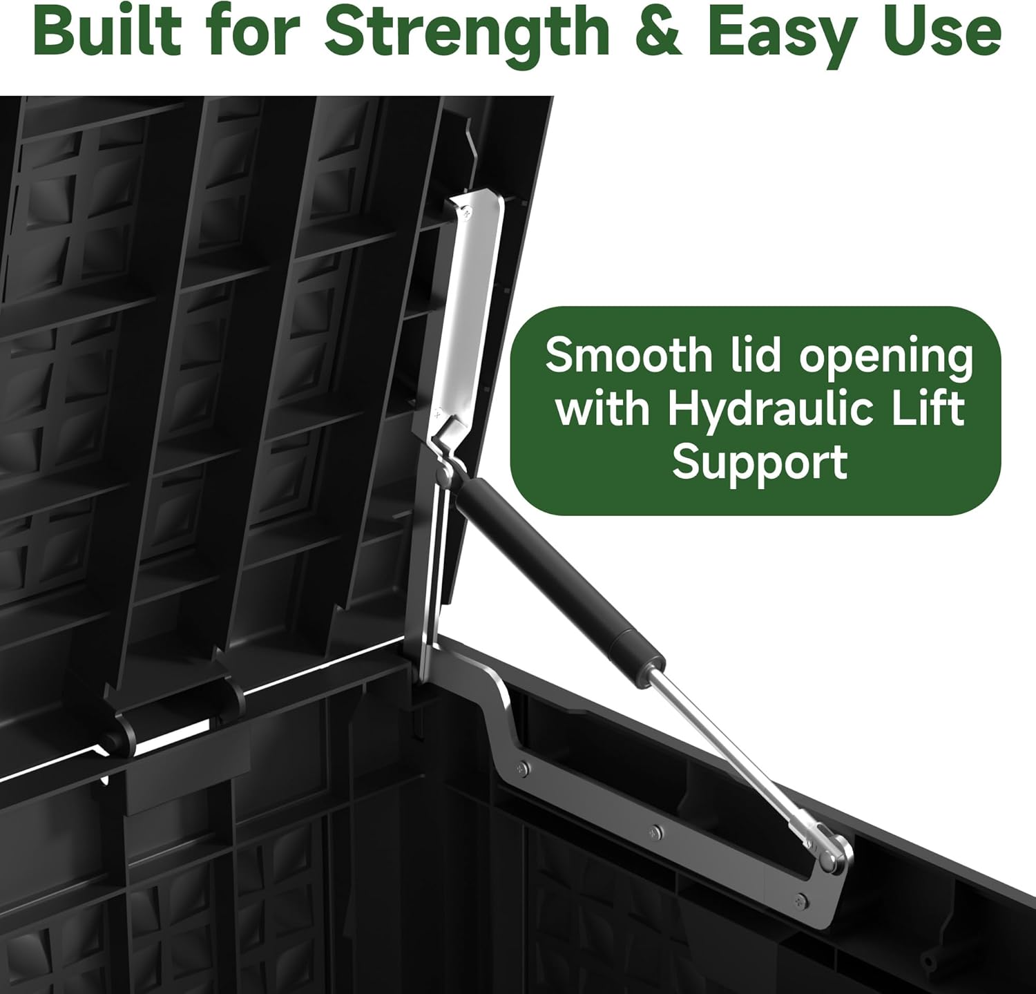 • STURDY AND RELIABLE BUILD:Designed with internal reinforcement, this deck box offers superior strength and stability compared to similar products. The robust panel construction and precise assembly help maintain its shape over time.