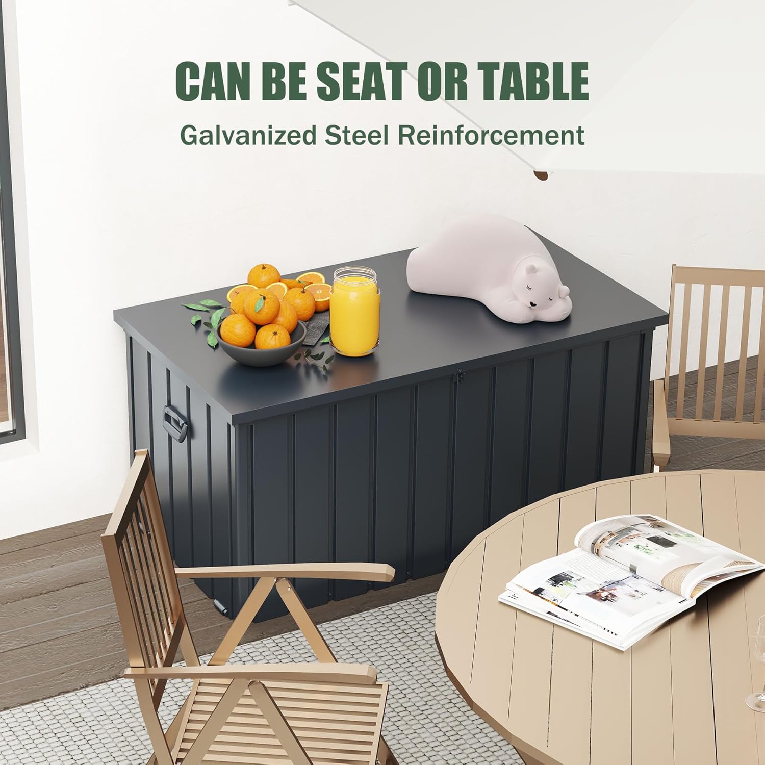 Domi Deck Box 160 Gallon, Waterproof Lockable Steel Outdoor Storage Container for Outside Cushions, Garden Tools and Pools Equipment, Gray