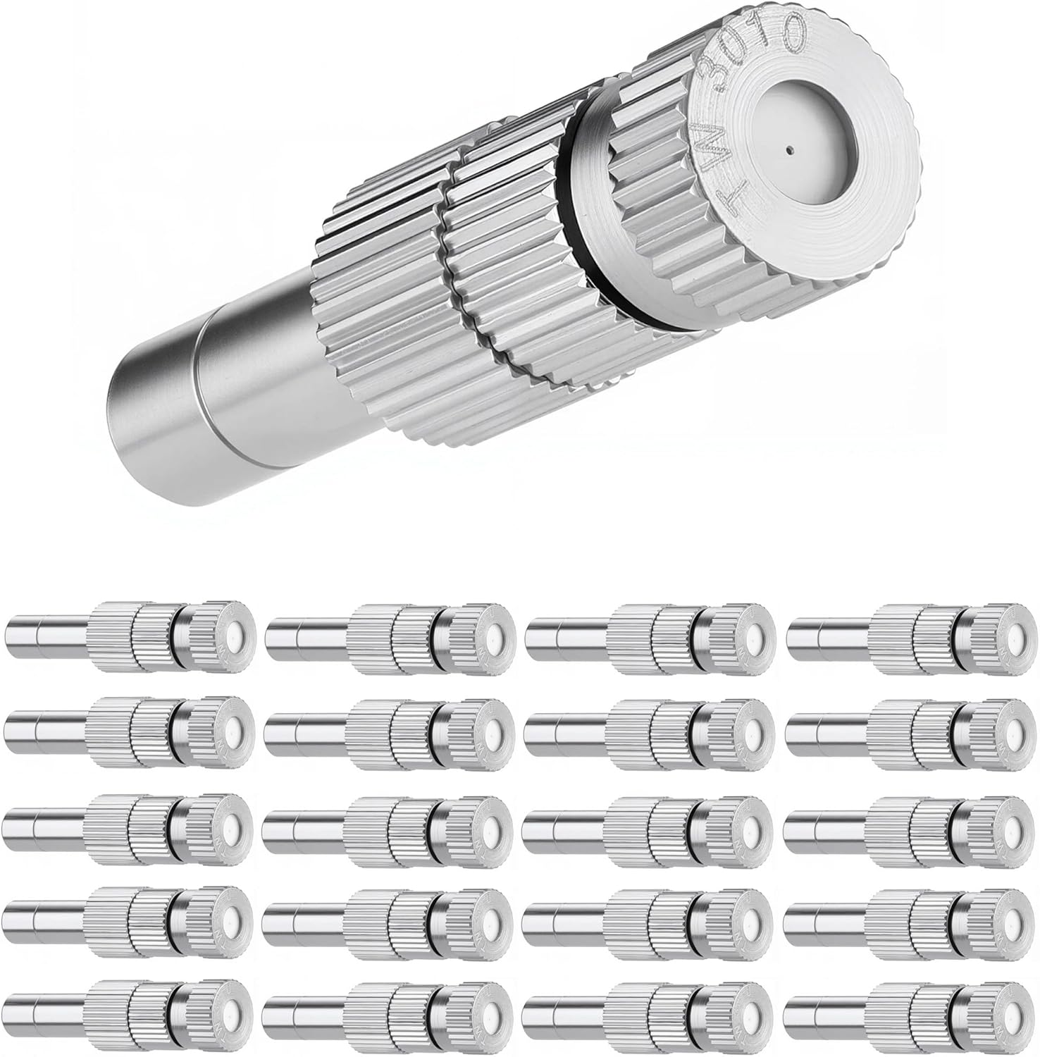 • 【Package Includes】: Mornajina detachable and washable Brass Misting Nozzles Mister Replacement Nozzles come with 20pcs mister nozzles with filter mesh, fit 1/4" Water Misting Nozzle Tees, Atomizing Misting Sprayer outer diameter: 0.35inch, orifice diameter: 0.3mm (0.012"), working pressure: 10-70kg/300-1000psi.
