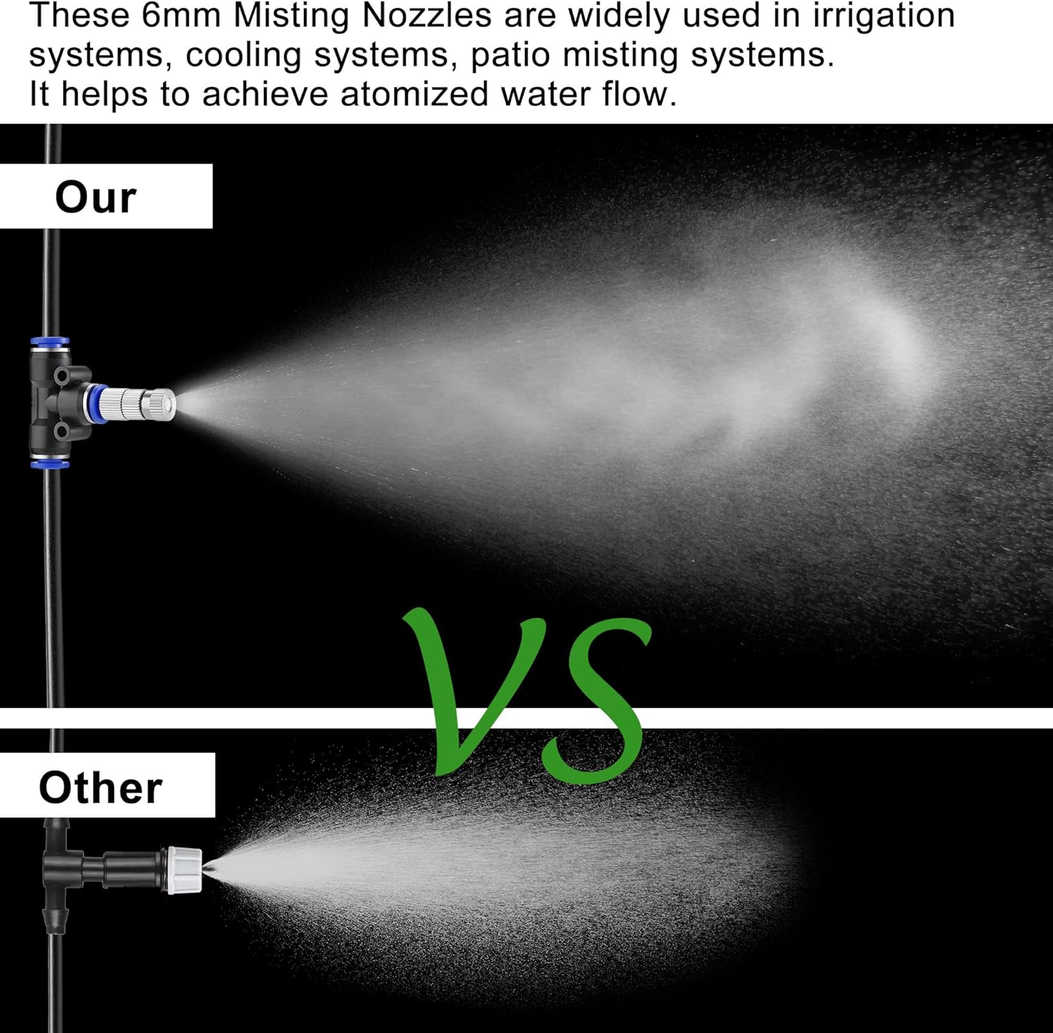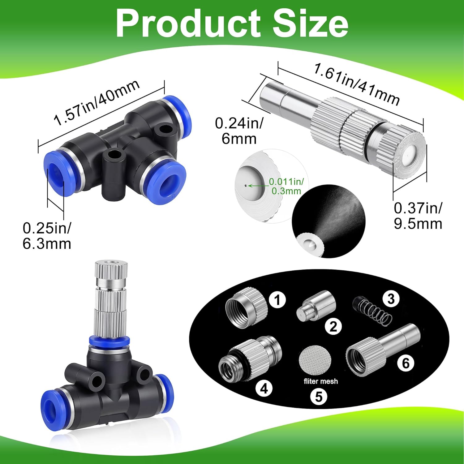 • 【1/4" Mist Nozzles Tee】: Mornajina 6.3mm / 1/4" misting nozzles tees can be connected to multiple spray nozzles to achieve uniform irrigation of large areas, and can accurately control the flow rate to meet the needs of a variety of application scenarios. Besides, it is very easy install and simple to maintain. These Mister Nozzles Tees fit most 1/4" tubing pipe.