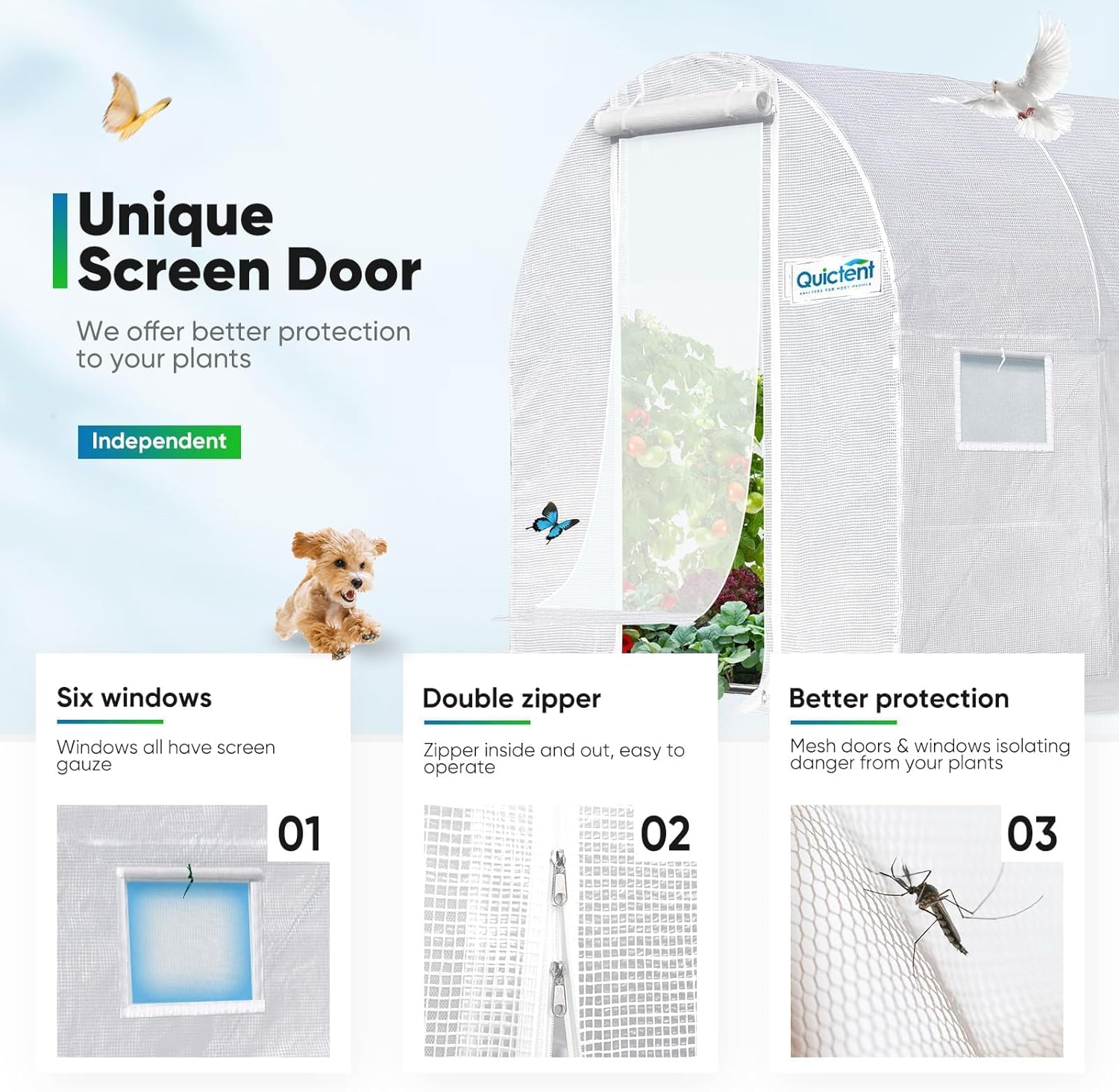 Quictent Premium Greenhouse for Outdoors, 10x6.6x6.6FT Upgraded Portable Walk-in Heavy Duty Frame Large Garden Plant Hot Outside Hoop House, 6 Ventilated Screen Window and Zipper Screen Door, White