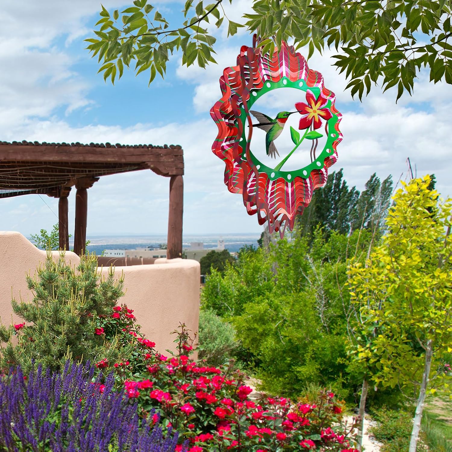 • 【3D Hummingbird Wind Spinner】The bird wind spinner showcases a breathtaking 3D hummingbird design. As it catches the sunlight, it imparts vivid colors and lively movement, creating a captivating display that offers both a delightful visual experience and a sense of wonder. This humming bird wind spinner is sure to enhance the charm of your garden or patio.