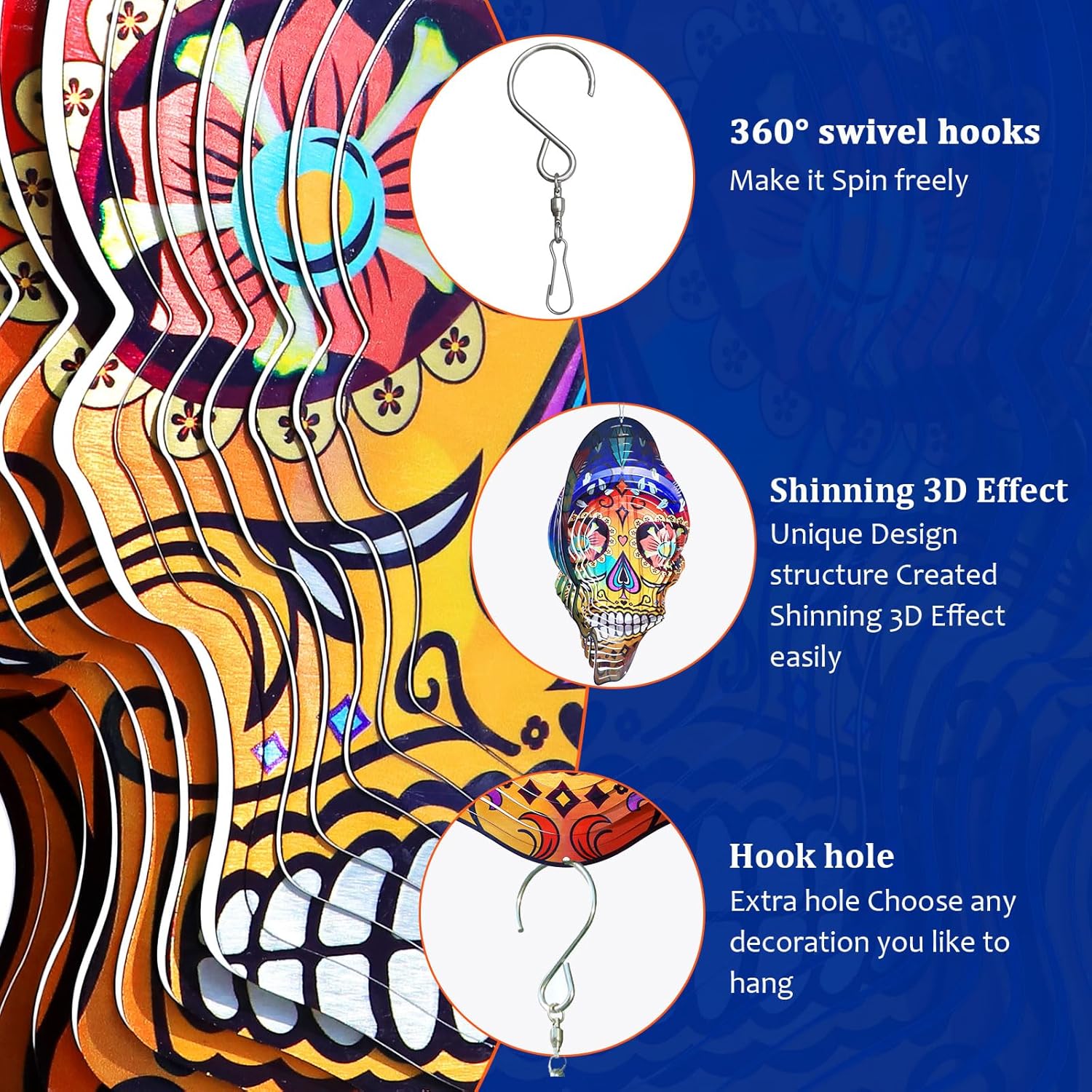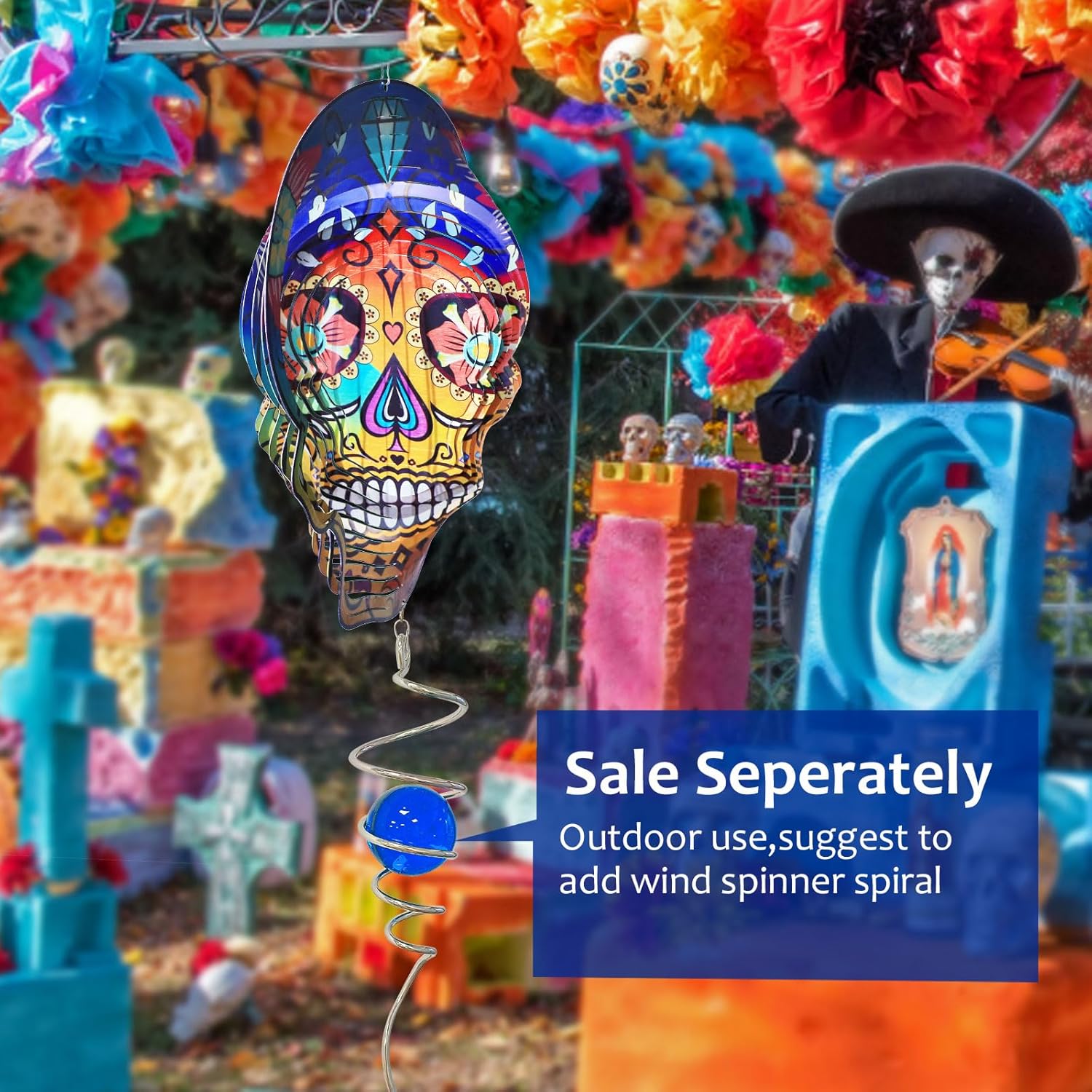 • 【Kinetic Sugar Skull Wind Spinner】The skull wind spinner showcases a breathtaking 3D sugar skull design. As it catches the sunlight, it imparts vivid colors and lively movement, creating a captivating display that offers both a delightful visual experience and a sense of wonder. This kinetic wind spinner is sure to enhance the charm of your garden or patio.