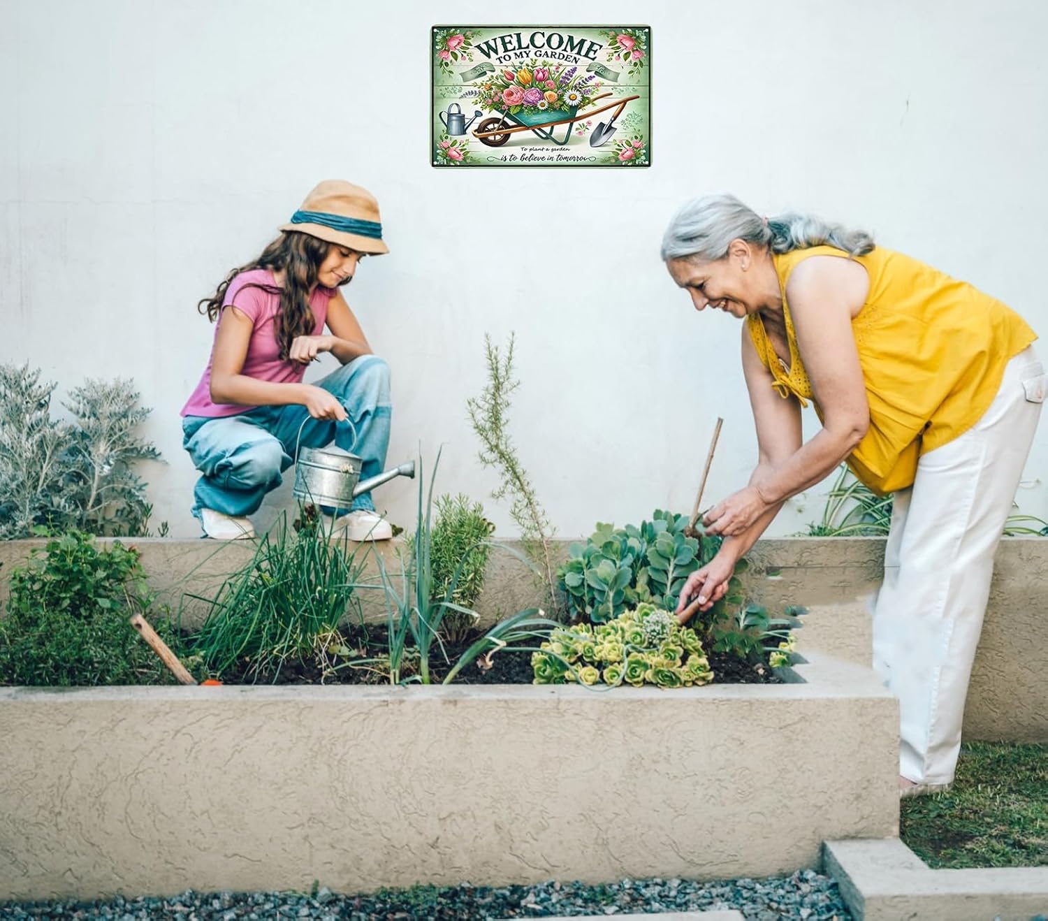 Bestylez Gardening Gifts Vintage Gardening Signs Welcome to My Garden Tin Sign for Home Garden Greenhouse Living Room Bedroom Yard Cottage Outdoor Decor 8X12 Inch (3357)