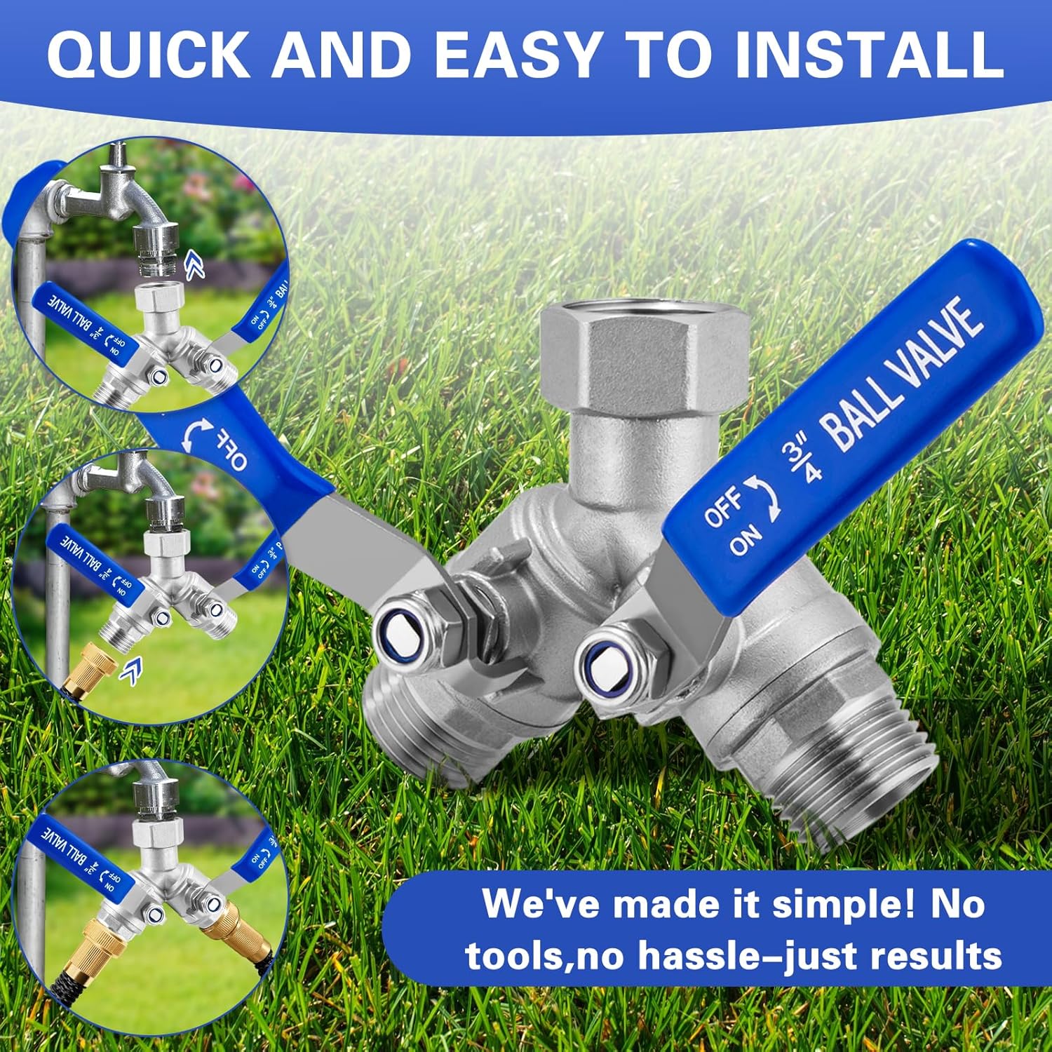 • 【Easy Installation】The hose y splitter with shutoff is threaded and securely connected, requiring no tools and easy to install. Hose splitter 2 way has a large rotary nut that can be turned 360°, and the hose dispenser can be quickly attached to any standard outdoor faucet.