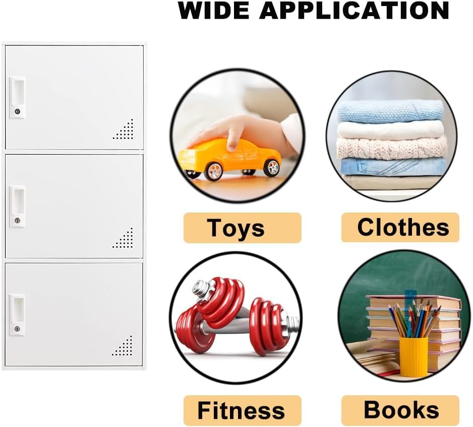 • 3-Door Storage Cabinet Applicable in Multiple Scenarios: Our 3-door metal storage cabinet is a highly adaptable storage product. With its simple and elegant appearance and practical internal structure, teaching aids and students' items in schools, files and materials in offices, and clothes and sundries at home. It is a great helper for storage in all kinds of scenes.