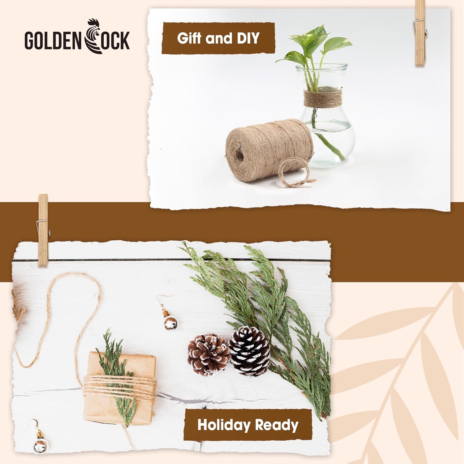 2mm - 600FT Natural Jute Twine Rope String - for Crafts Gardening Plant Accessories Gift Wrapping, Arts Packing Material Christmas Twine Bulk Wedding Decor