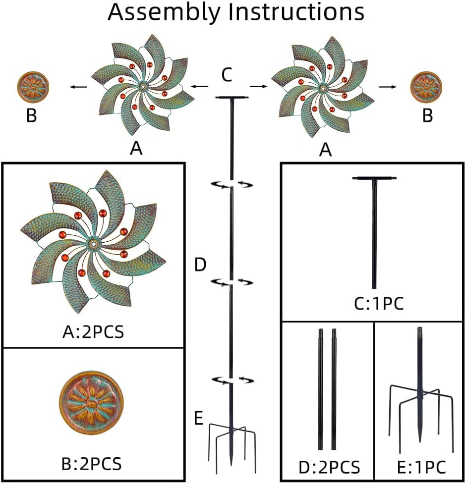 • Super Construction:This garden wind spinners has a solid metallic construction, blades can smoothly spin on sealed bearings, adding vitality and color to your garden