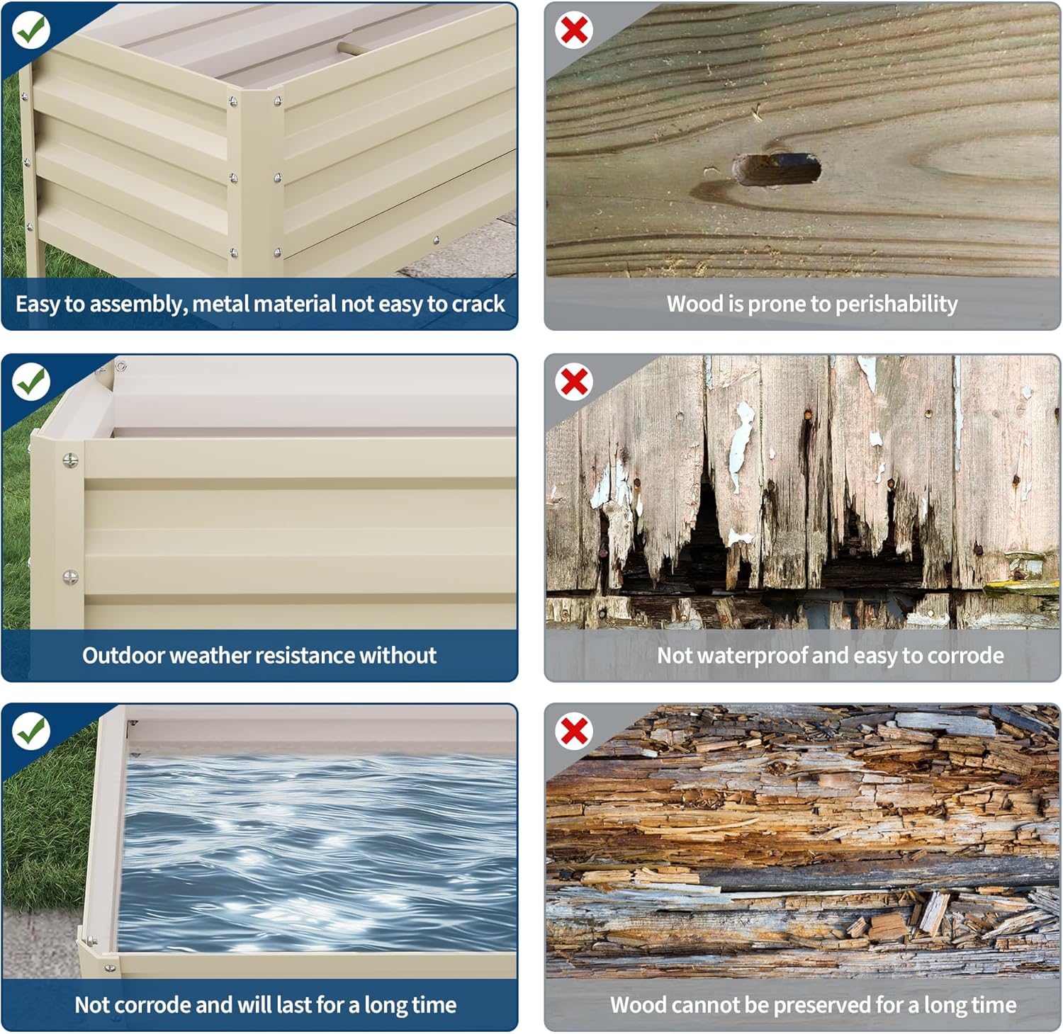 • 【Rust-Resistant Raised Beds】 Featuring a protective coating, these raised garden beds won’t rust, even in damp conditions. Enjoy a corrosion-free garden bed that stays functional and attractive for years.