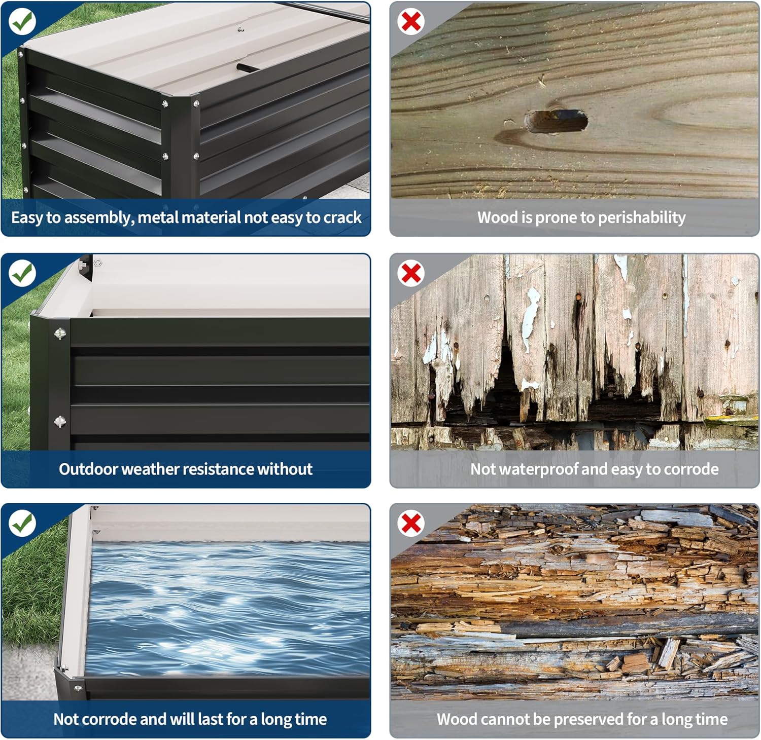 • 【Rust-Resistant Raised Beds】 Featuring a protective coating, these raised garden beds won’t rust, even in damp conditions. Enjoy a corrosion-free garden bed that stays functional and attractive for years.