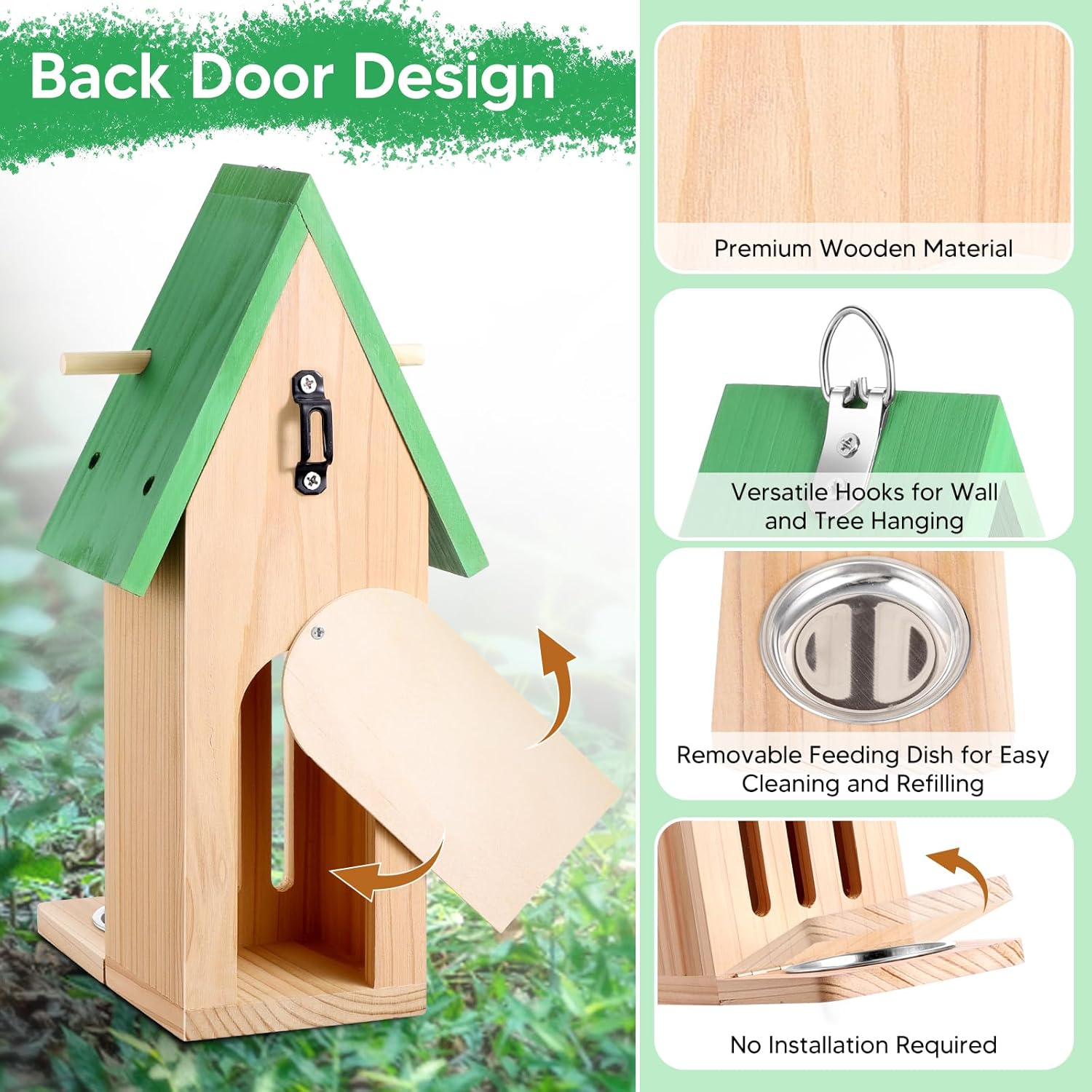 • 【Easy-Clean Back Door Design】 Unlike traditional butterfly houses with limited access, our innovative back door allows for quick and thorough cleaning. Simply open the door to refresh the interior, ensuring a hygienic resting space for visiting butterflies. Maintenance has never been easier