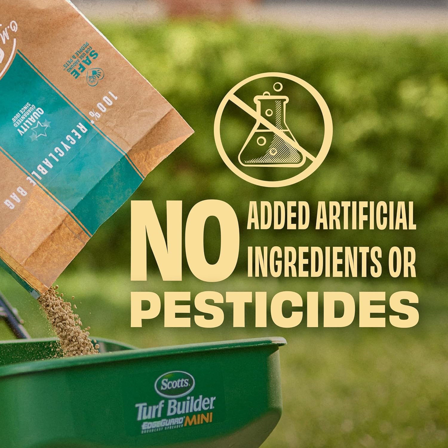 • Safe for use on all grass types (including yours) when used as directed; after application, toss the recyclable bag in your curbside recycling bin where available
