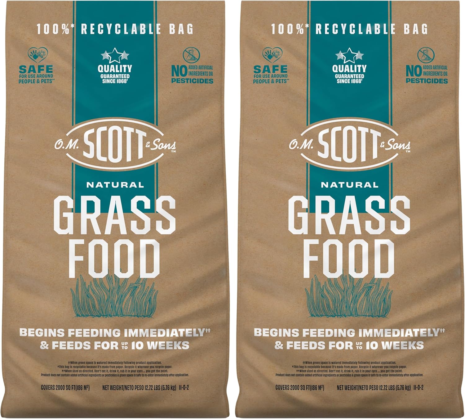 • This bundle comes with two bags of O.M. Scott & Sons Natural Grass Food; each 12.72 lb. bag covers 2,000 sq. ft.