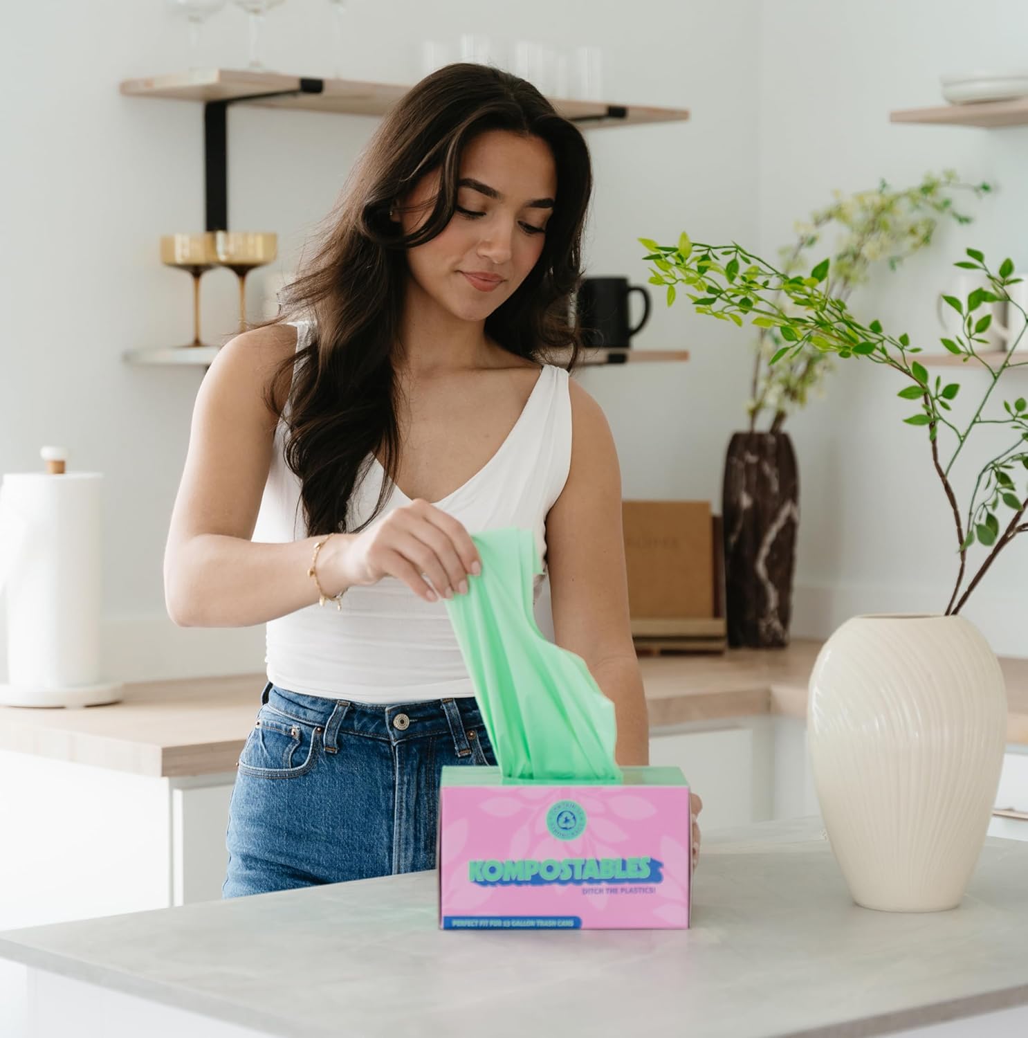 • Puncture/Heat Resistant with Strong, Easy-Tie Handles: Engineered to handle tough kitchen waste without tearing or leaking, these handle tie, eco-friendly trash bags are built for dependable performance. Kompostables are thicker and more heat resistant than other large compost bags, which often melt when in contact with warm food.