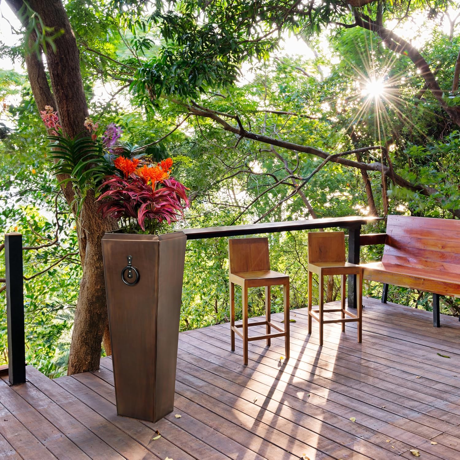 • Beautiful Copper Planter: Ready to be the new dynamic accent in your home and garden this large garden planter stands at 35 inches high and is 12 inches square at its widest and tapers to 8 inches square at the base.