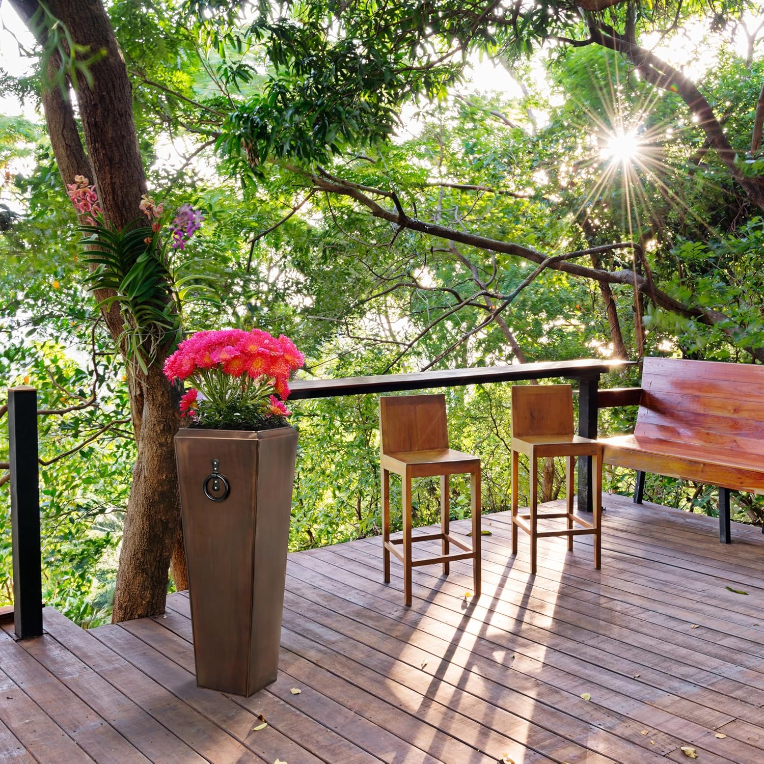 • Lightweight Stainless Steel: This tall planters is handcrafted from durable and lightweight stainless steel with H Potter’s one of a kind antique copper finish and a clear lacquer coating to help protect the pot as it stands out around your home and garden.