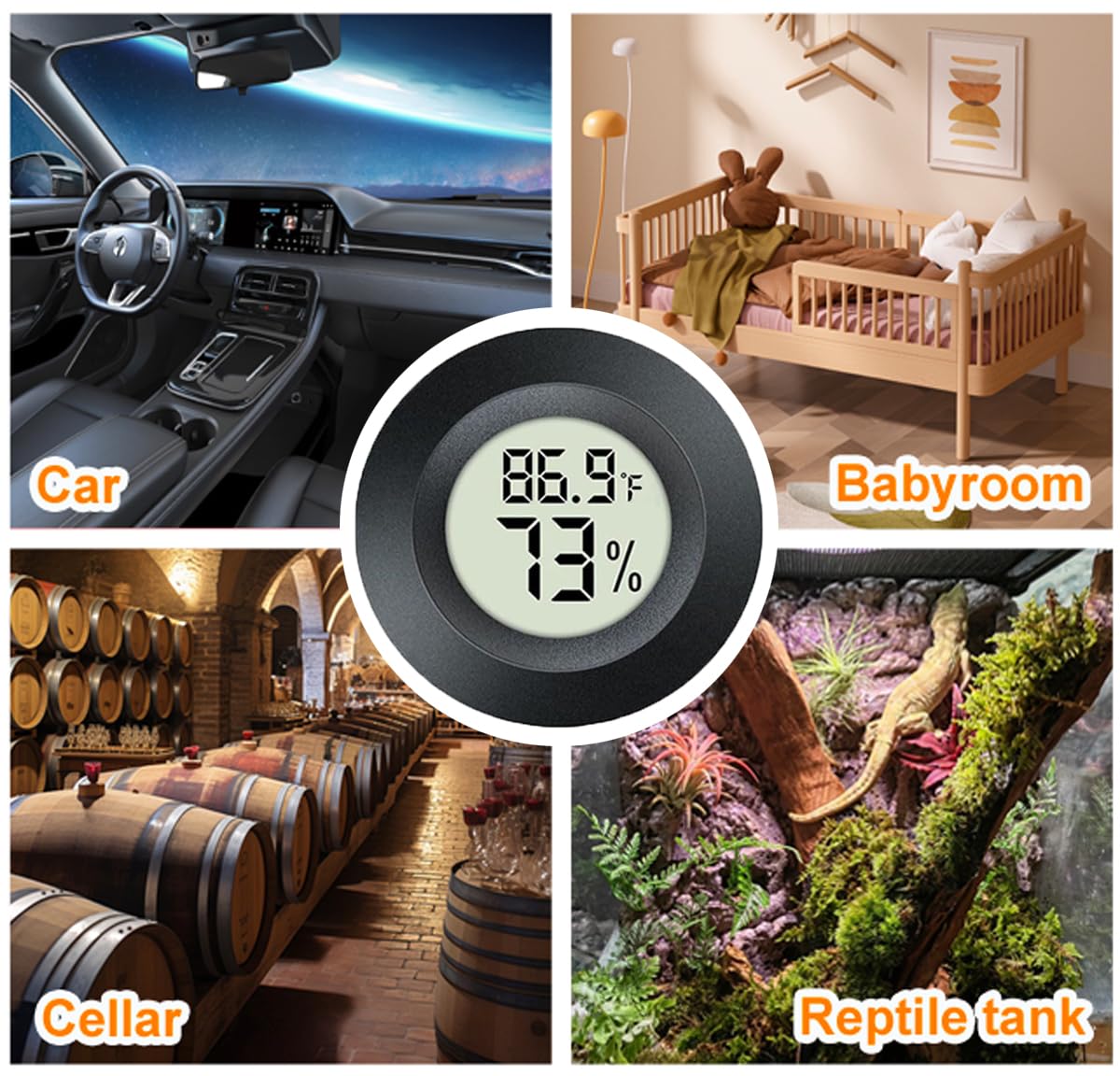 • 3-This portable hygrometer thermometer Measures Indoor humidity and temperature in time, help to adjust the humidifier, dehumidifier settings and humidistats, great for monitoring family's living conditions and health by preventing colds, dry skin, asthma, mold.