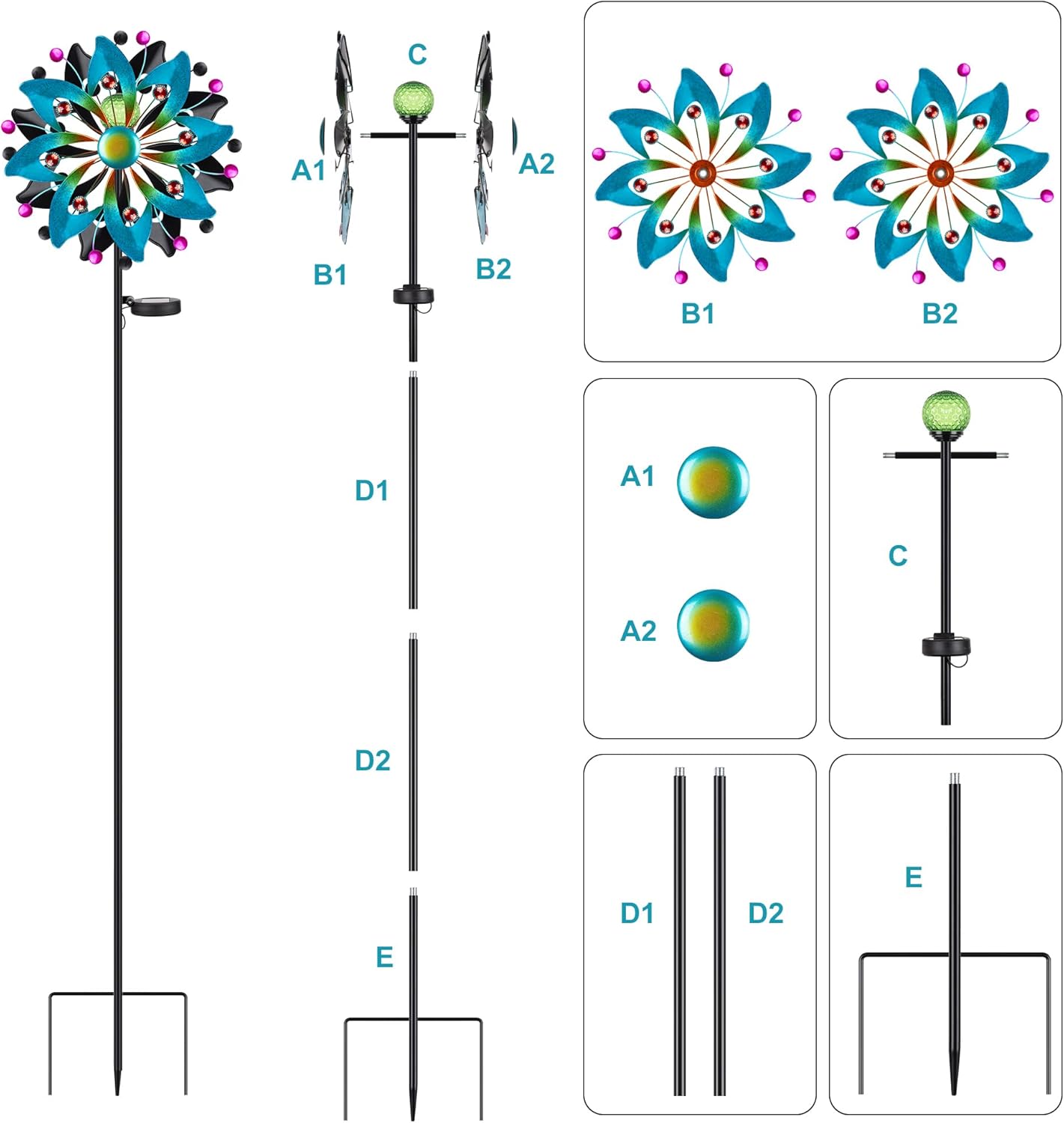 • EASY SPINNING AND INSTALLATION: Wind spinners for outside utilizes high quality low friction bearings that can rotate 360 degrees at low wind speeds. The metal wind spinners can be installed by simply twisting and tightening each part without any tools, once assembled, insert it into loose soil and you have a garden wind spinners outdoor and spinner that looks like a work of art.