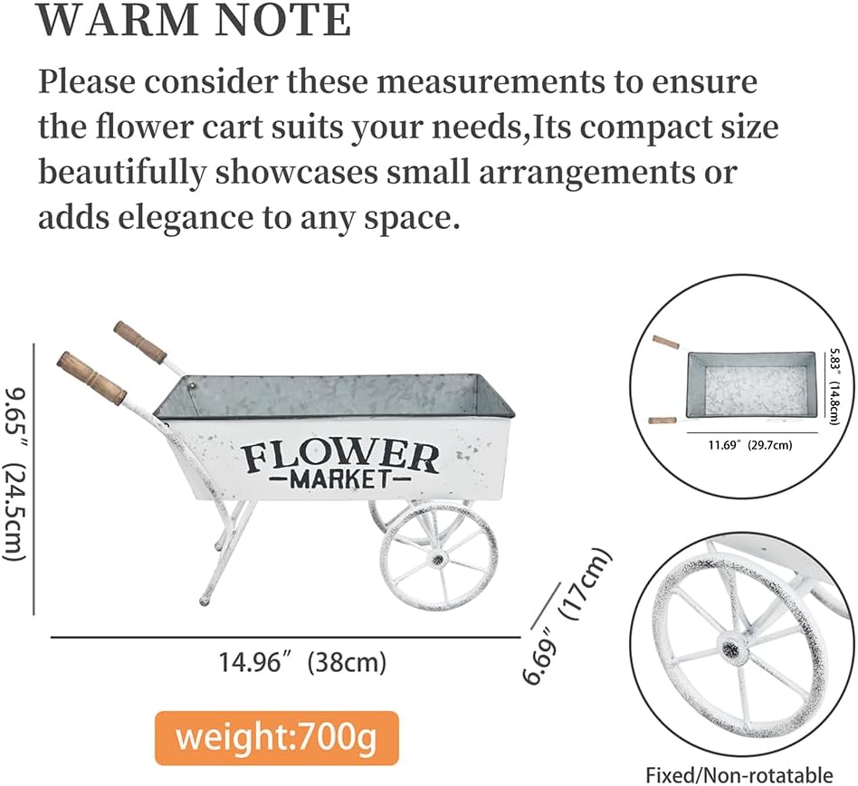• PLANT STAND - The garden planters size: 6.69"D x 14.96"W x 9.65"H". Add a charming touch of vintage farmhouse style to your garden or patio with this delightful decorative flower market cart planter.Farmhouse planter cart provides ample space for multiple plants or flowers while maintaining a decorative appeal.The weathered finish and 'FLOWER MARKET' text give it that coveted vintage appeal, while its sturdy construction ensures lasting beauty