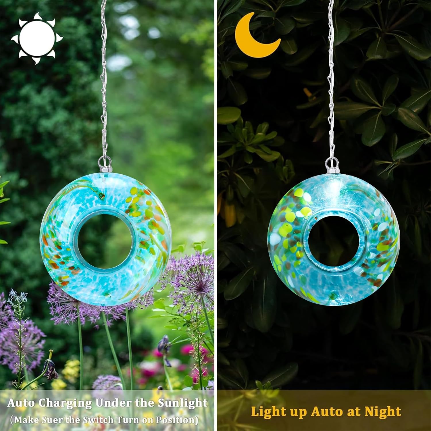 • Unique Glass Bird Feeder: Has a colorful glass design which reflects beautiful lights in the sun and attracts birds to feed, making your home and garden more lively. With new solar lights design to guide the birds to feed at night