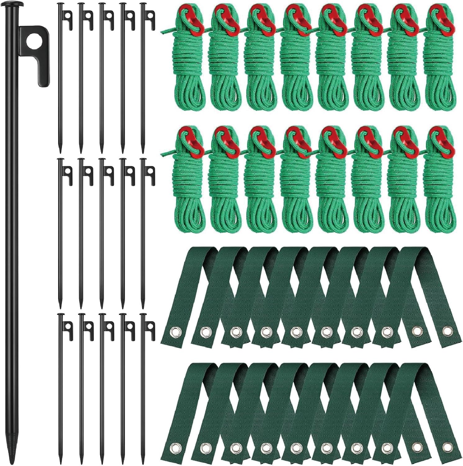 Suzile 60 Pcs Tree Stake Kit, Heavy Duty Tree Staking and Supports for Leaning Trees Include 11. 8'' Steel Stakes 15. 8'' Support Straps 13. 12 ft Ropes for Anchoring Hurricane Protection (Green)