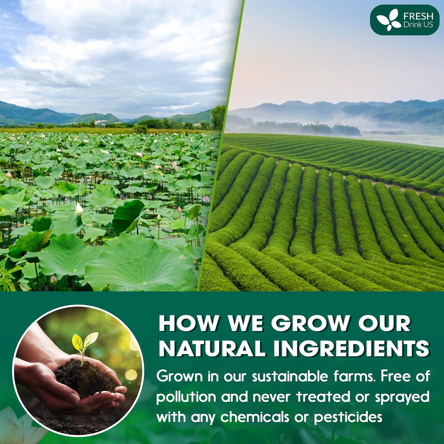 FreshDrinkUS, Premium 20 Tea Bags of Lotus Green Tea, 100% Natural. Exquisite Flavor, Handpicked Leaves, Perfect for Tea Lovers. No Sugar, No Gluten, Vegan.