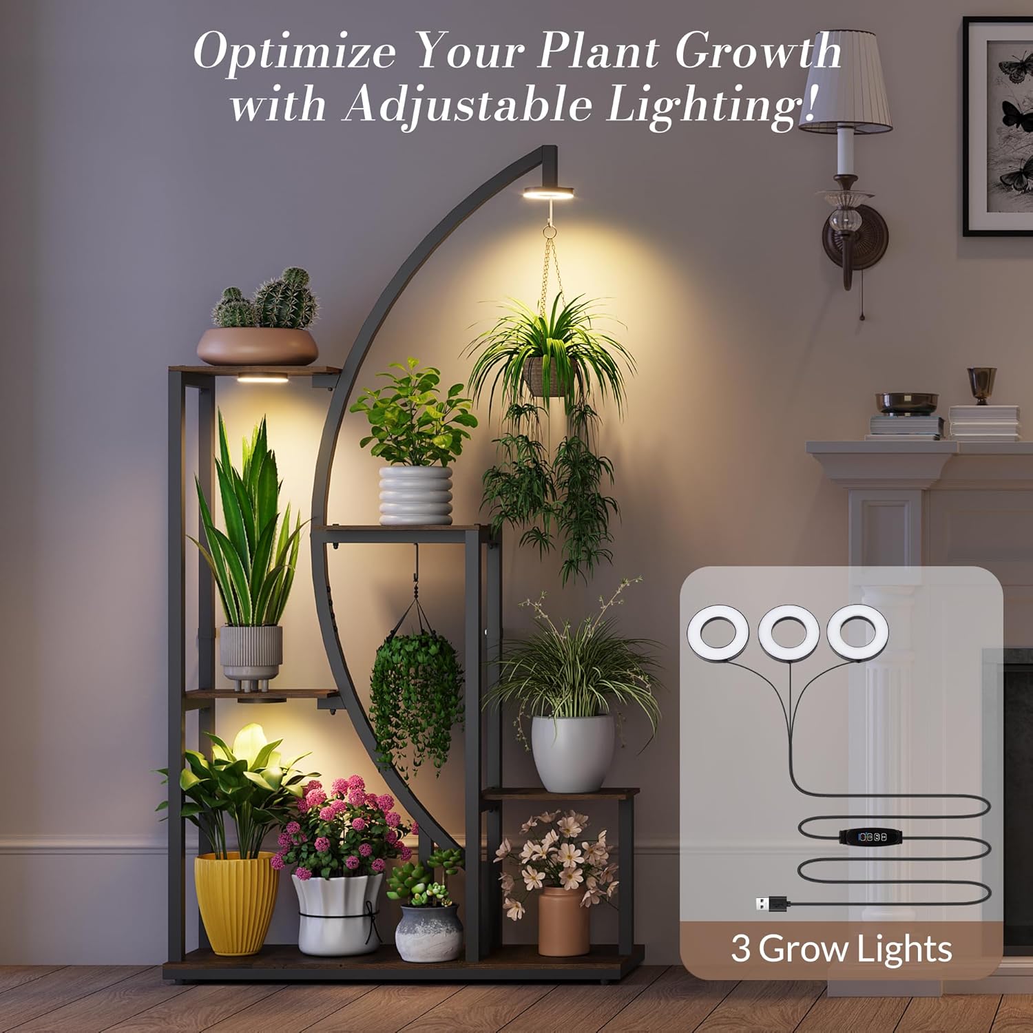 • Plant Stand with Adjustable Grow Lights: This plant stand with grow lights provides full-spectrum lighting to support healthy plant growth. Equipped with adjustable brightness, three lighting modes, and a timer function (3H/9H/12H), the three-head grow light ensures that all plants receive sufficient light, promoting photosynthesis. This lighted plant shelf keeps them thriving year-round, even in low-light spaces. Includes a UL-certified 5V/2A adapter for safety and efficiency.