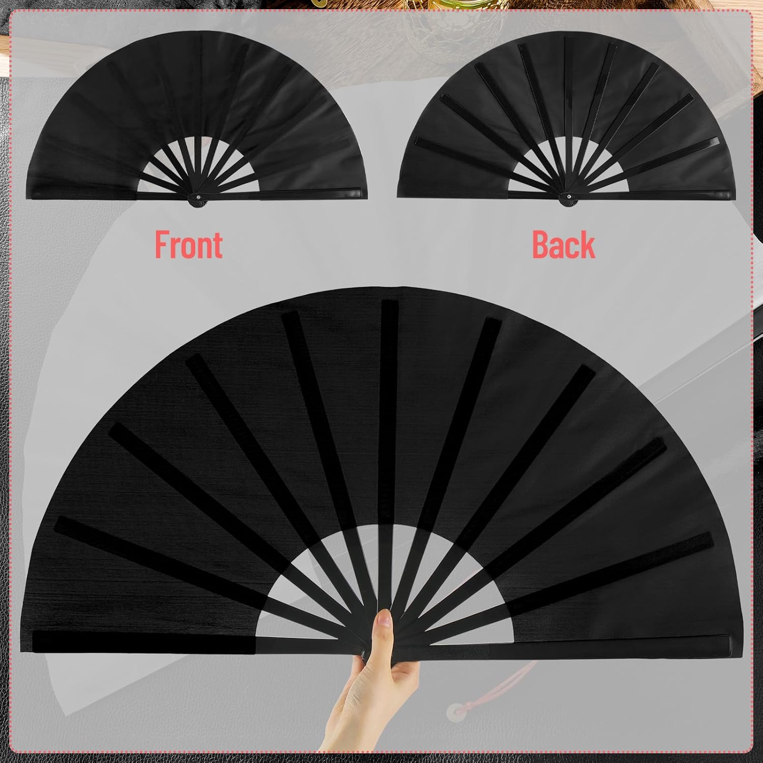 Maitys 2 Packs Large Clap Fans for Line Dancing Large Chinese Folding Hand Fans for Men and Women, Festival, Tai Ji, Kungfu, Martial Art, Gifts (Black and White)