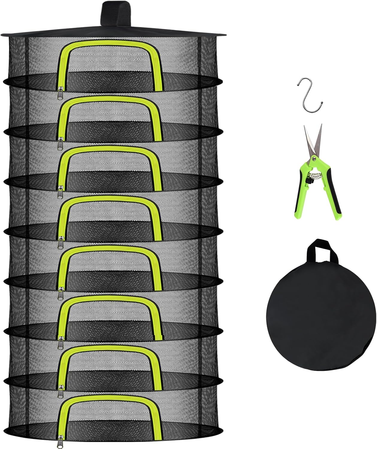 8 Layer Herb Drying Rack, Herb Drying Rack Hanging Mesh, Foldable Grass Drying Rack With U-Shaped Zipper, Garden Scissors, Hooks, For Drying Herbs Plants, Flowers, Fruits, Food(8 Layers-23.62'')