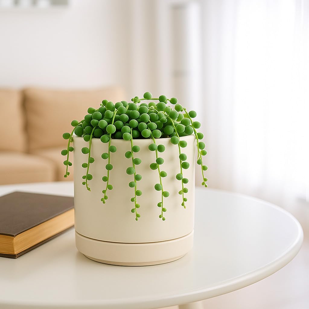 • Simple, elegant, and modern cylindrical straight round planter pot with saucer and drainage hole.
